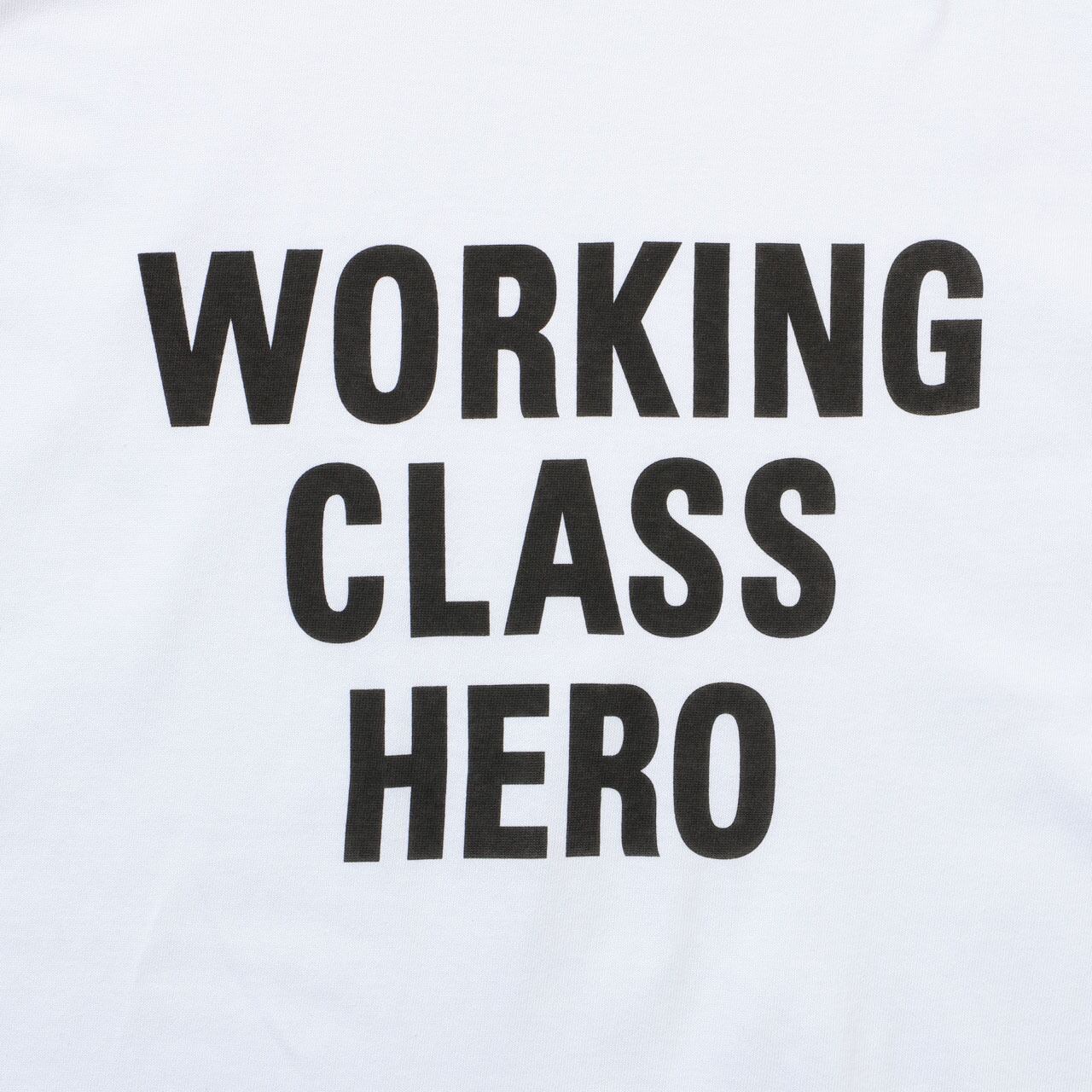 Tシャツに書かれた「WORKING CLASS HERO(=労働者階級の英雄)」は、