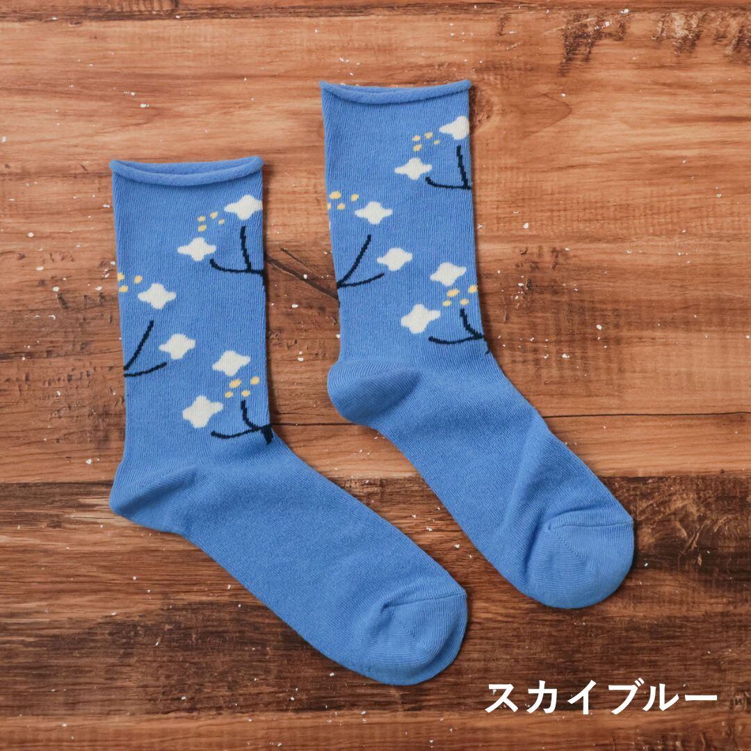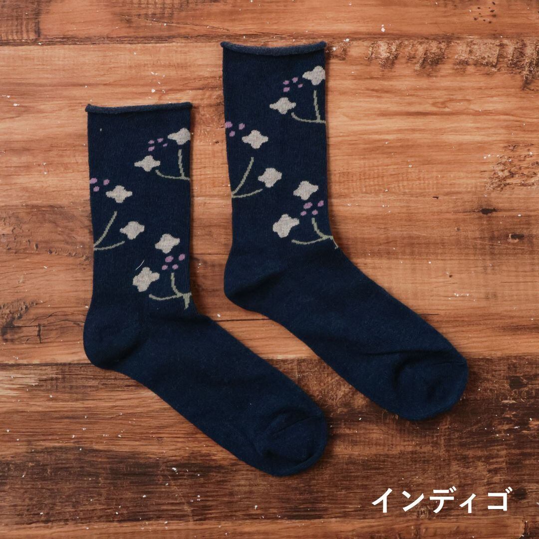 靴下 レディース ソックス ふんわりくつした サルビア salvia ゴムなし コットン ブランド 履き心地 保温性 発汗性 おしゃれ かわいい ナチュラル 日本製 ギフト プレゼント ブルー グレー ネイビー 22-25cm 紫陽花 Sv020