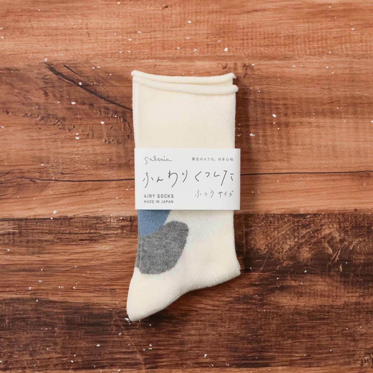 “昔ながらのゆっくり編み”で、素材も手間も時間もたっぷりかけてつくる「ふんわりくつした」は、ゴムが入っていないのでしめつけ感がなく、ふんわりとした履き心地です。