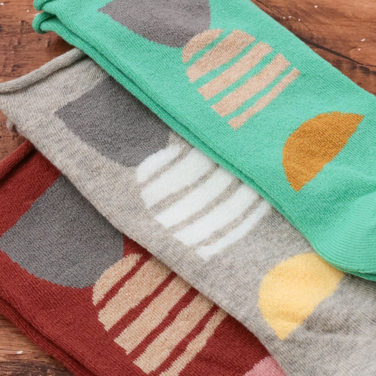 北欧らしいデザインが人気の「日暮れ」から、新しい季節の足元をポップにしてくれる靴下の登場です。
