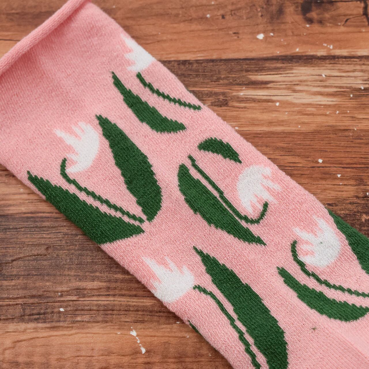 北海道の春を知らせるお花「カタクリ」を描いた靴下です。
