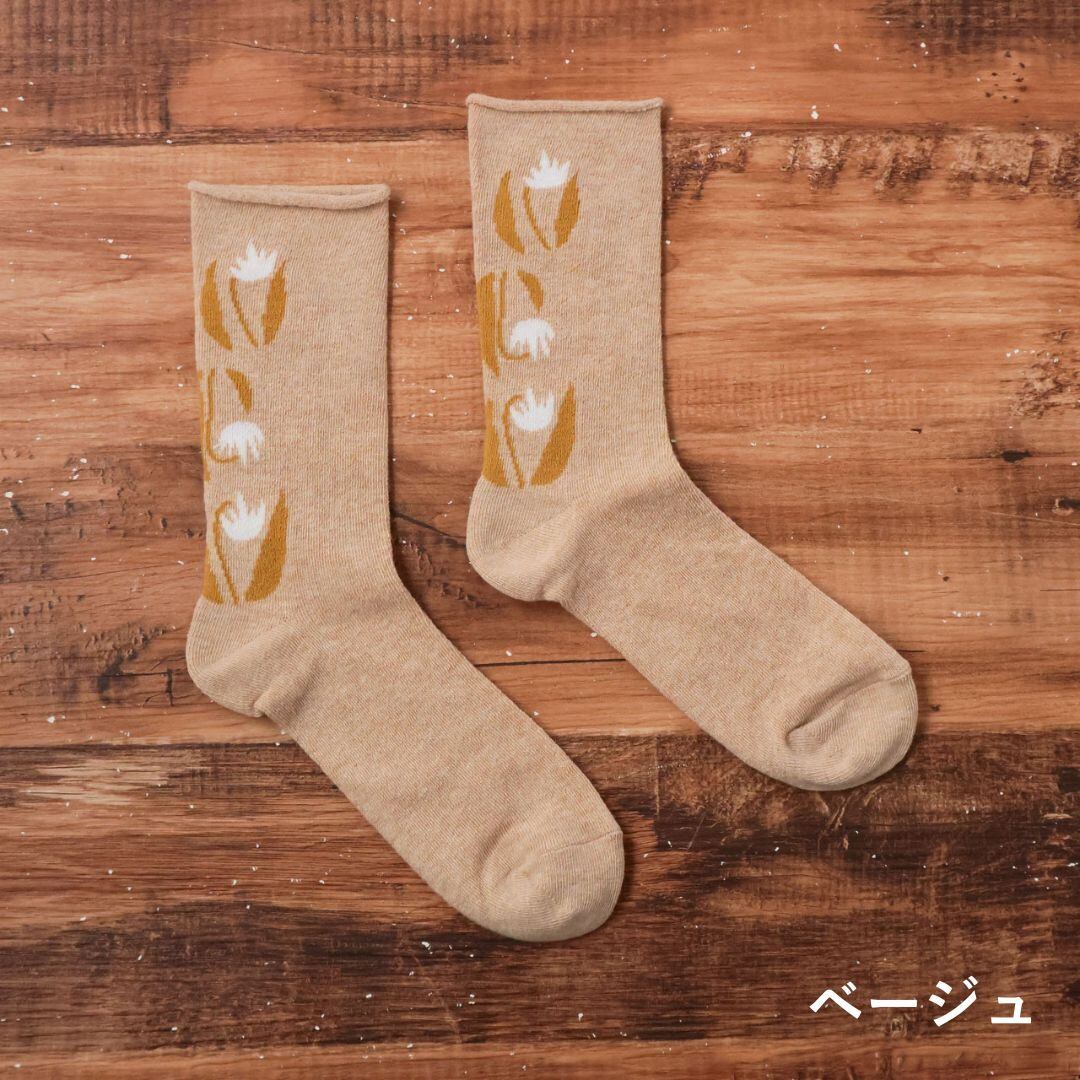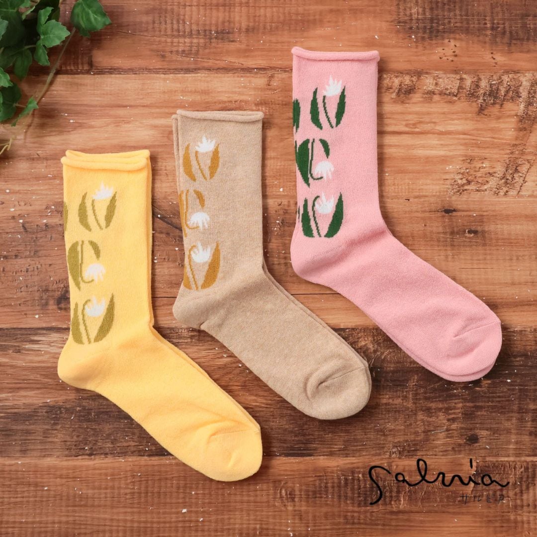 靴下 レディース ソックス ふんわりくつした サルビア salvia ゴムなし コットン ブランド 履き心地 保温性 発汗性 おしゃれ かわいい ナチュラル 日本製 ギフト プレゼント イエロー ベージュ ピンク 22-25cm カタクリ Sv019