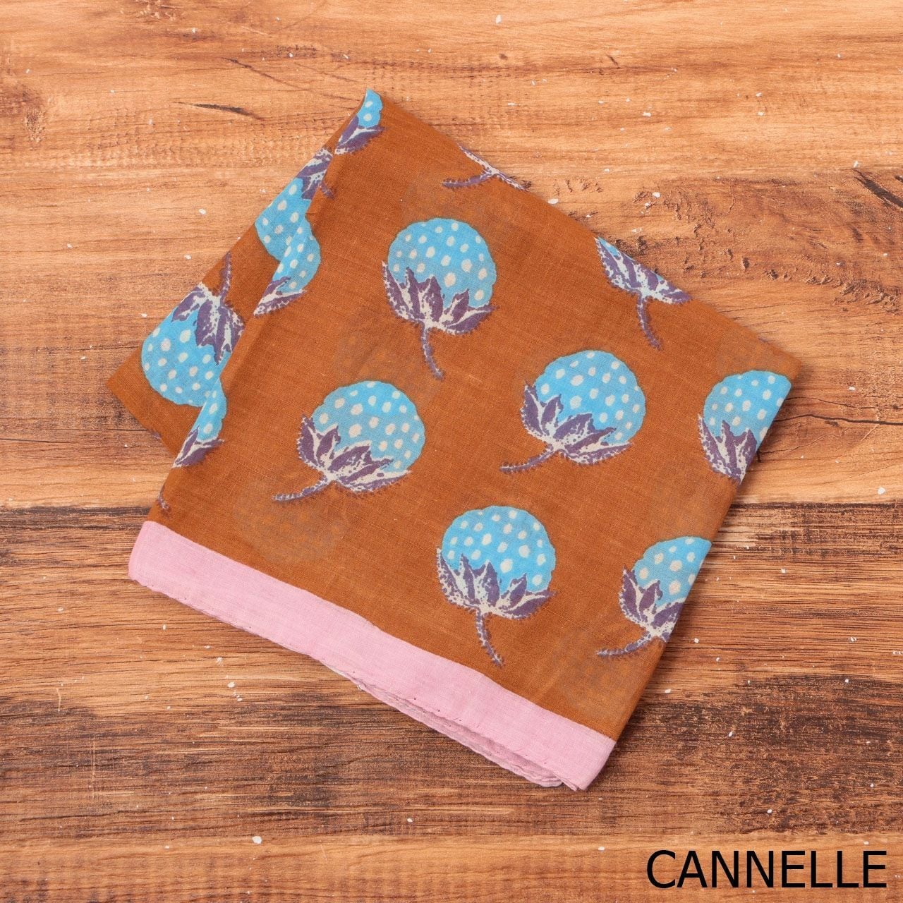 上質な薄手のコットン100%のスカーフは、シルキーな光沢感があり、さらっとした着け心地です。