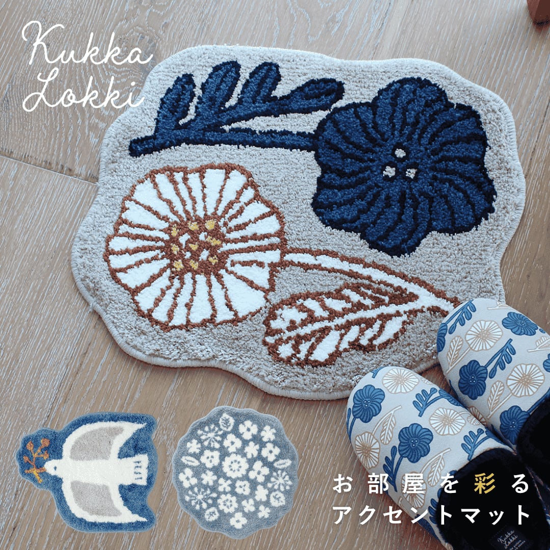 アクセントマット 滑り止め おしゃれ 北欧 インテリア リビング 玄関 お風呂場 洗面所 ワンルーム ベッドサイド ソファ ナチュラル 柄 室内 滑り止め付き 北欧柄 ダイカット クッカロッキ Kukka Lokki 7211KKL16 ビスク Bq087