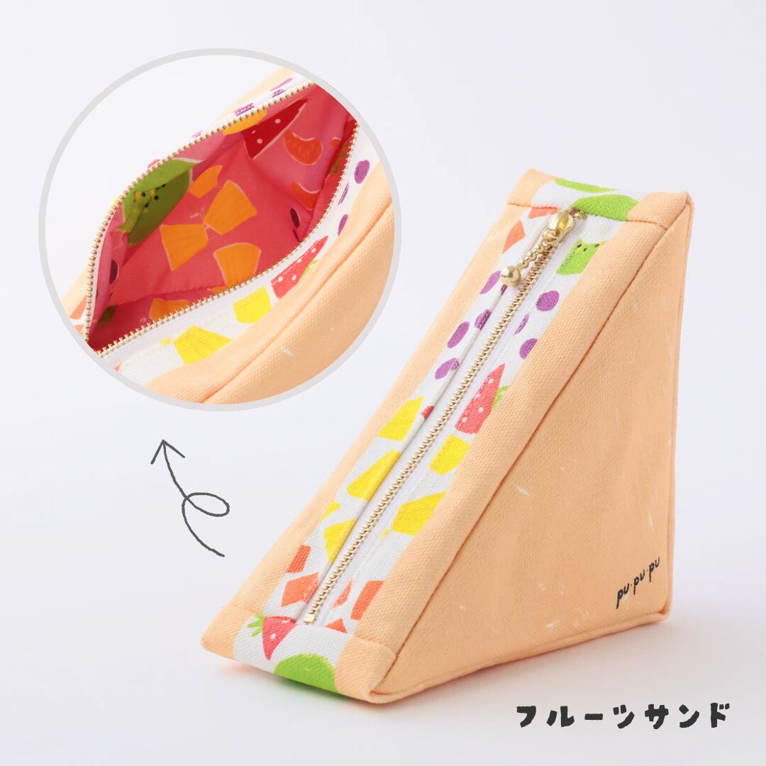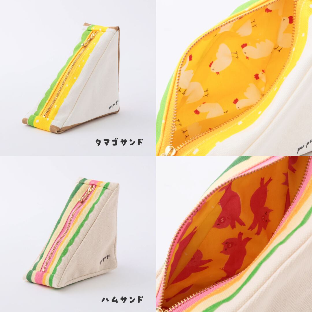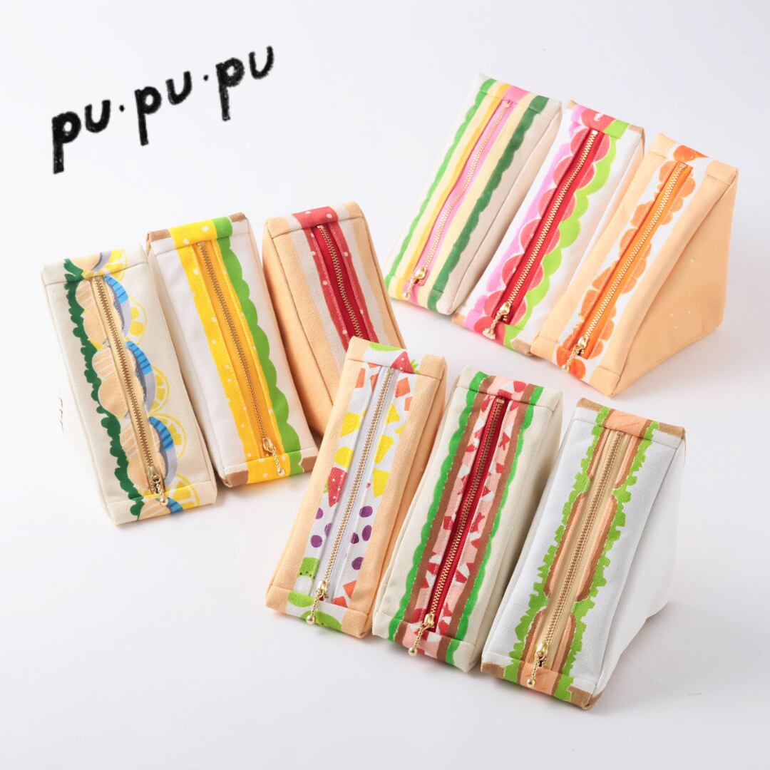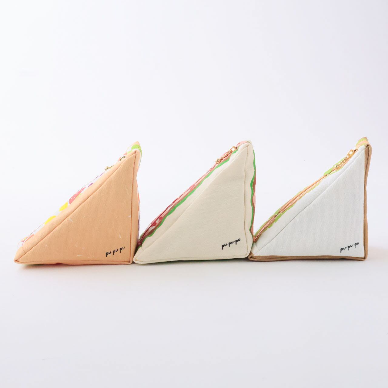 思わず「pupupu ぷぷぷ」と笑ってしまうような、使うのが楽しくなる雑貨を製作しているpu・pu・puから三角形のサンドイッチの形をした、ポーチができました!