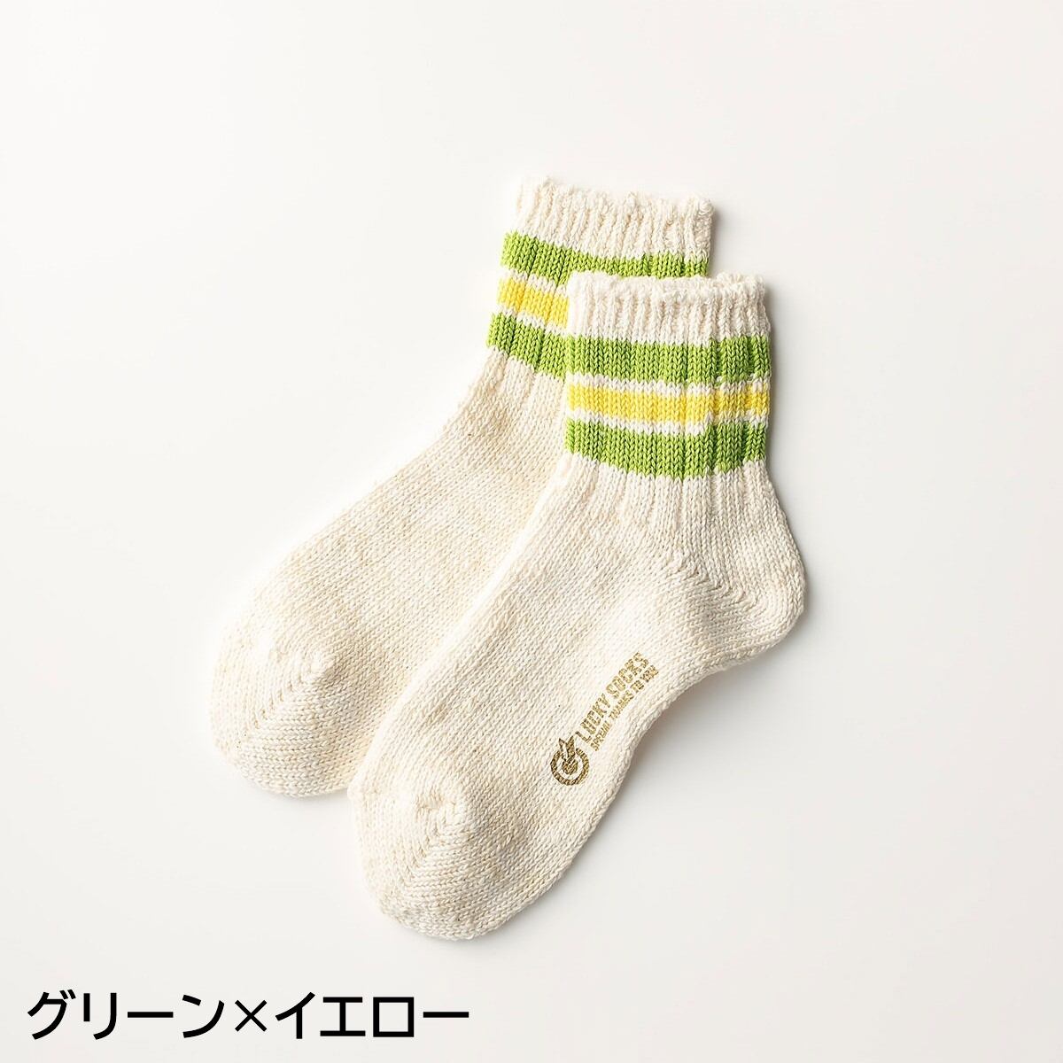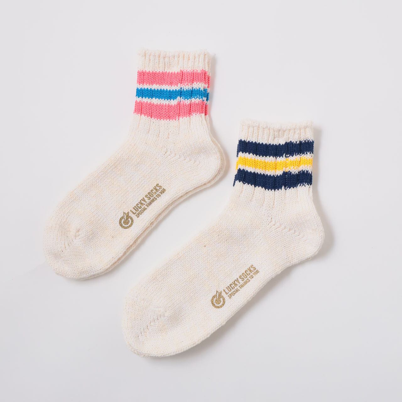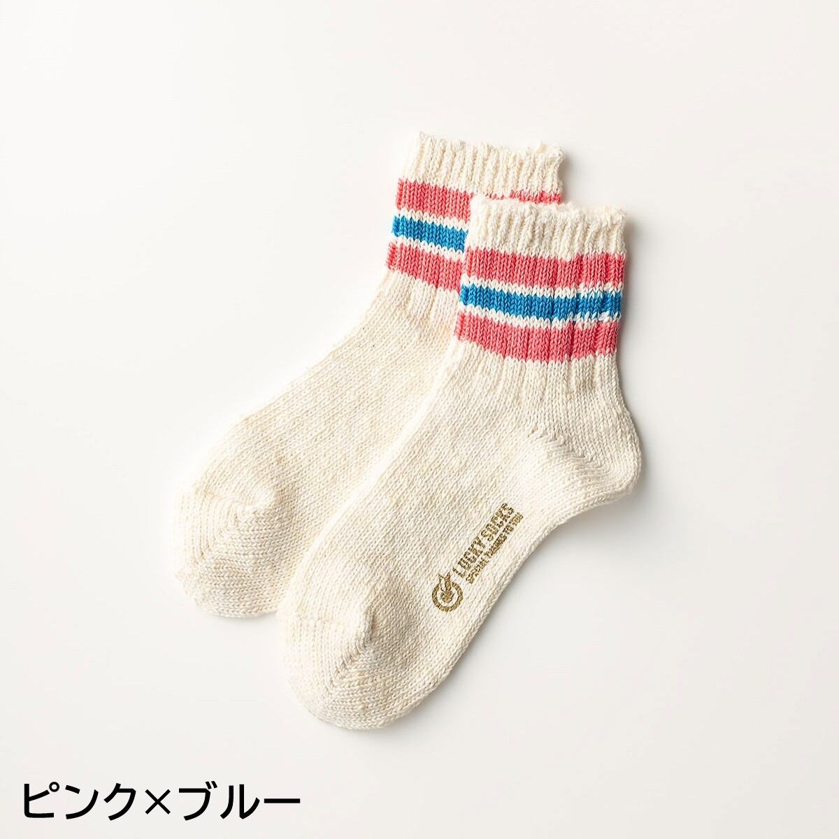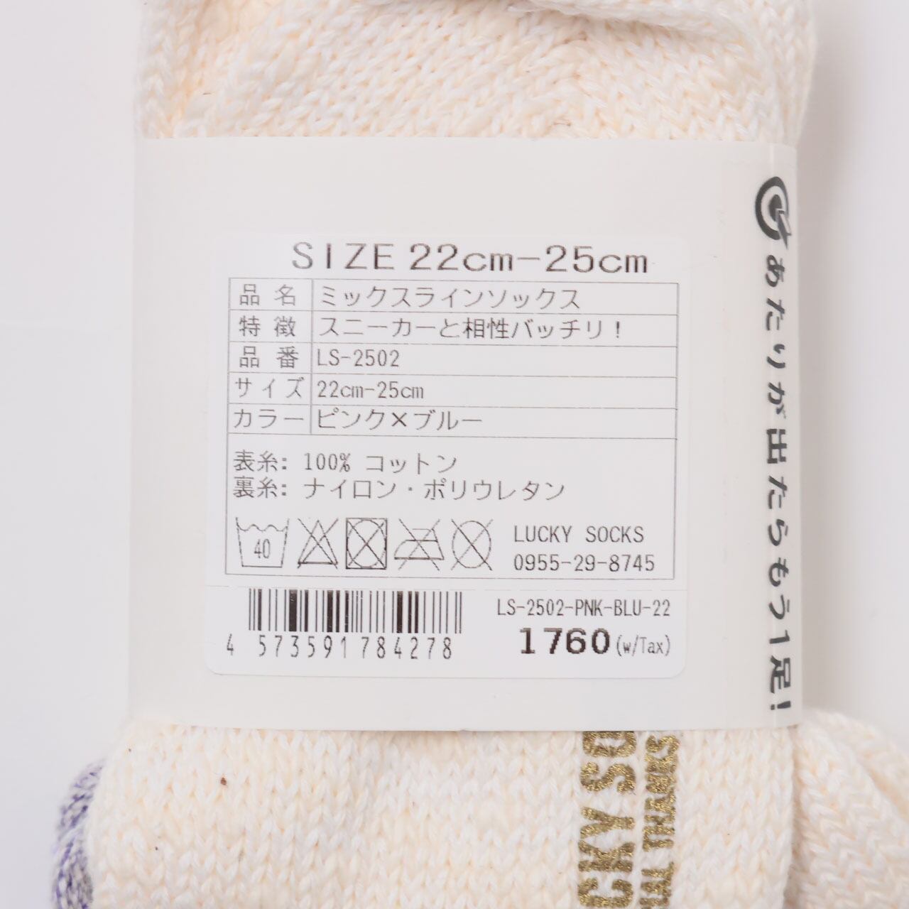 ラッキーソックス LUCKY SOCKS ミックスラインソックス レディース オールシーズン 綿100 コットン 22-25cm ピンク ブルー レッド グリーン 靴下 おしゃれ ライン 入り ライン靴下 LS-2502 Ls018