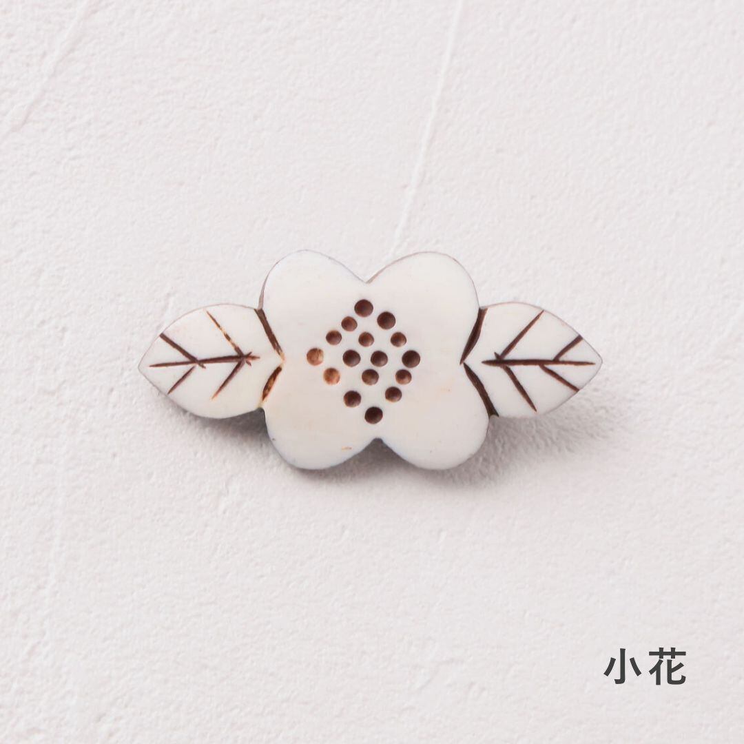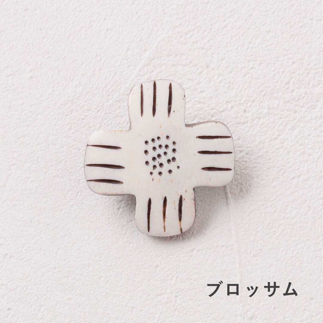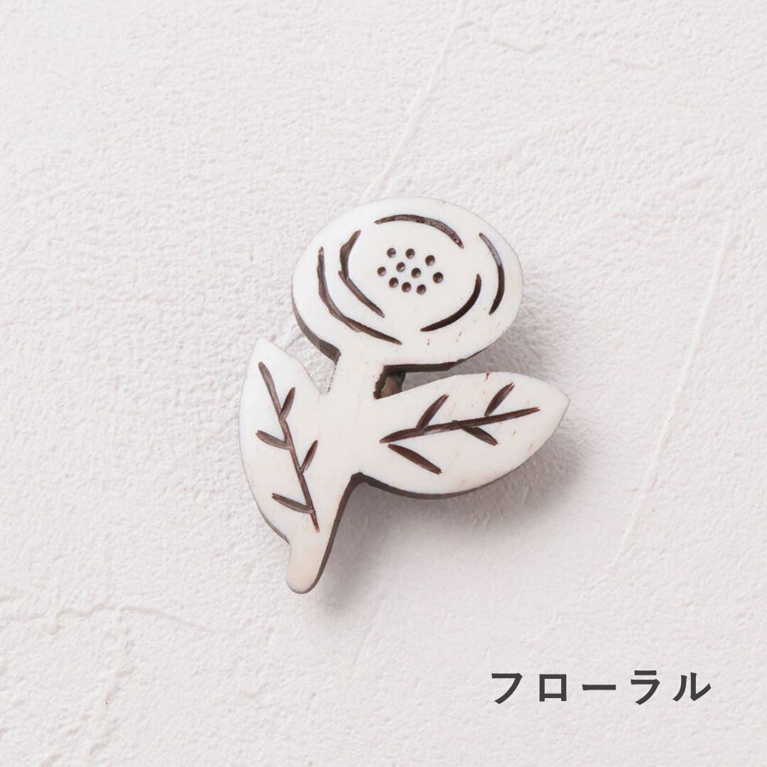 水牛の骨を丁寧に手彫りしてつくったボーンブローチです。