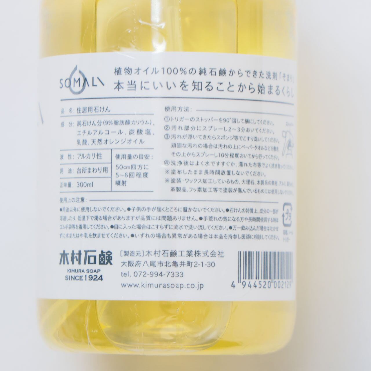 木村石鹸 SOMALI ソマリ そまり キッチンクリーナー 300ml 本体 スプレー 日本製 台所洗剤 ギフト 石鹸 天然素材 台所用洗剤 洗剤 天然 肌に優しい 化学物質不使用 掃除 キッチン 油汚れ ヌメリ取り おしゃれ プレゼント So001