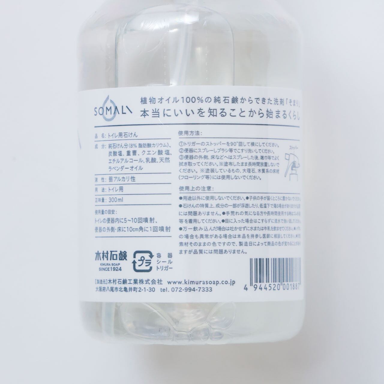 木村石鹸 SOMALI ソマリ そまり トイレクリーナー 300ml 本体 スプレー 日本製 トイレ洗剤 石鹸 天然素材 天然由来成分トイレ掃除 グッズ トイレ 洗剤 天然 肌に優しい 化学物質不使用 除菌 おしゃれ プレゼント So003