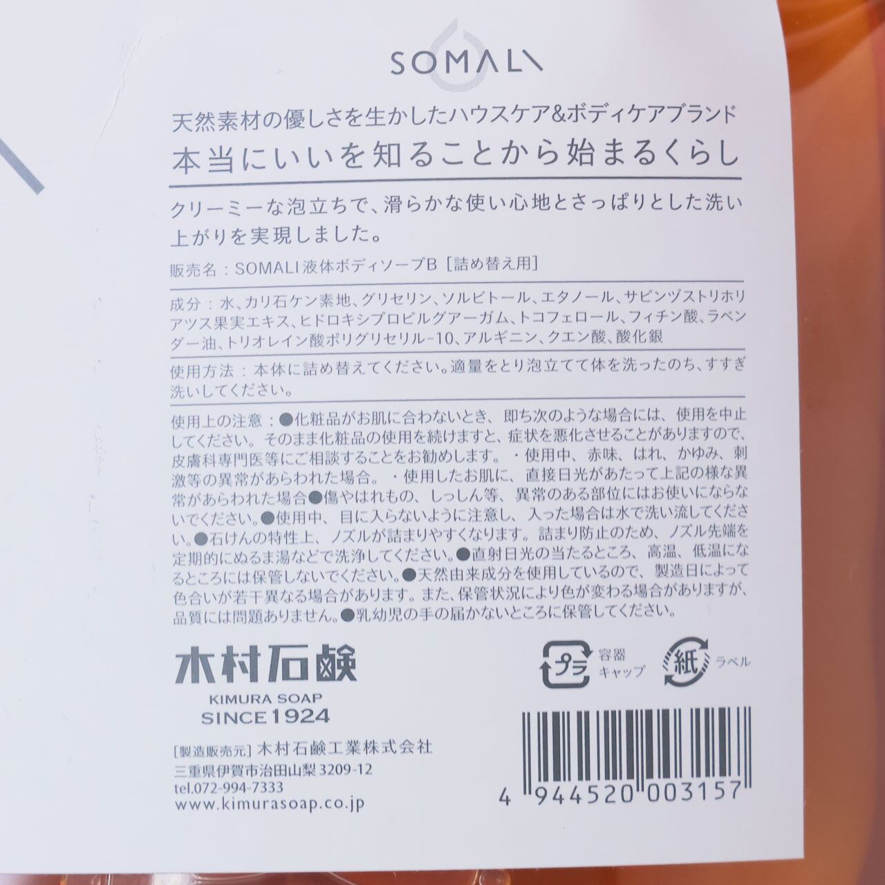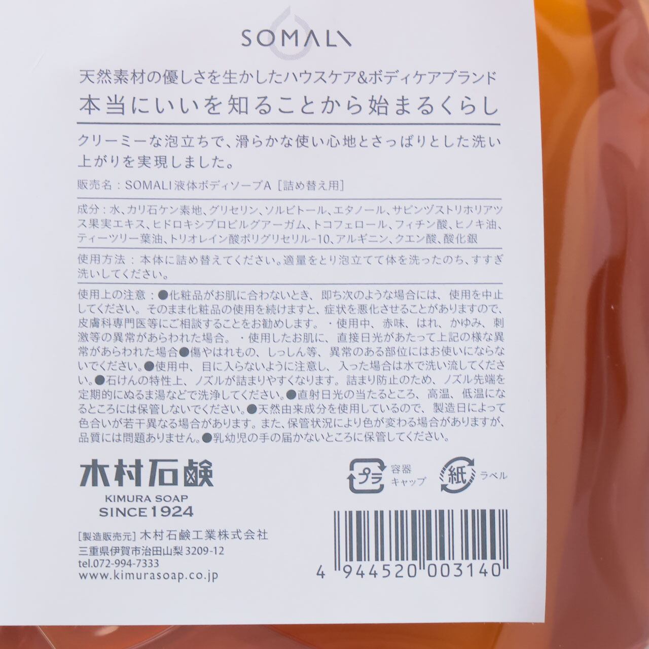 木村石鹸 SOMALI ソマリ そまり ボディ用液体石けん 1000ml 1L 【 詰め替え用 】 日本製 ボディソープ 大容量 いい香り おしゃれ 詰め替え 石鹸 石けん 天然素材 保湿成分 天然 肌に優しい ギフト プレゼント So010