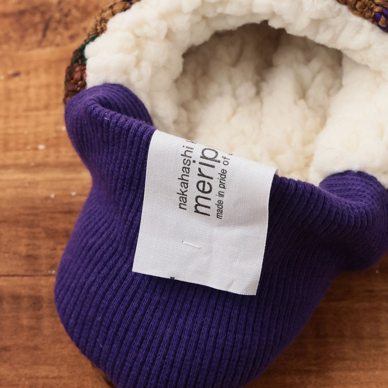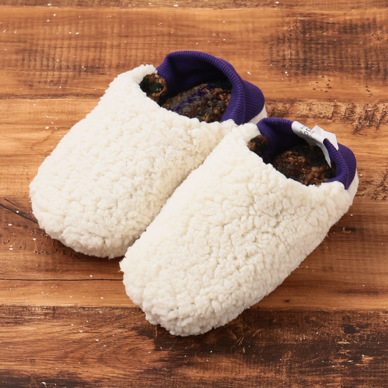 やわらかなメリヤス生地が足に心地よくフィットし、中綿入りでふんわり軽く、あたたか。