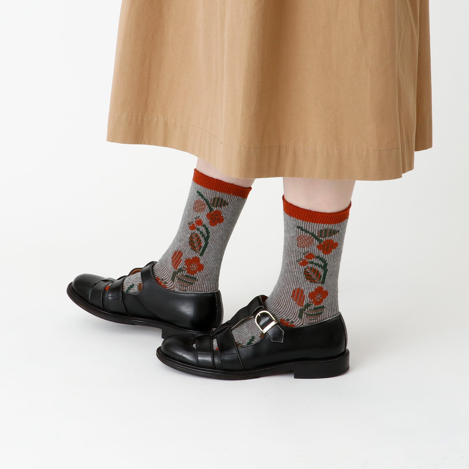 ナチュラルで優しい雰囲気の花柄を、繊細なジャガード編みで表現したソックスです。