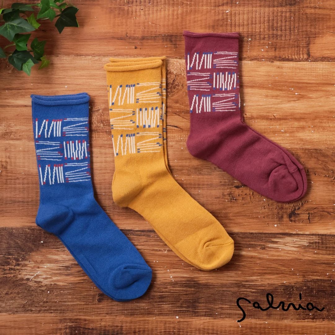 サルビア salvia ふんわりくつした レトロ マッチ 靴下 レディース おしゃれ 綿 日本製 ソックス 薄手 オールシーズン ブルー ボルドー イエロー 22-25cm Sv022