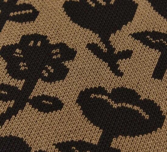 黒地に緑が浮かび上がるノスタルジックな雰囲気が、コーディネートに優しくモダンな彩りを添えます。