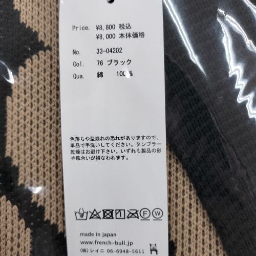 モダンで大きなモチーフが、手編みのような温もりと優しさを演出し、コーディネートに華やかな彩りを添えます。