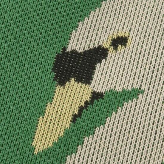 存在感のある白鳥のフォルムを、丁寧にジャガード編みで表現しています。