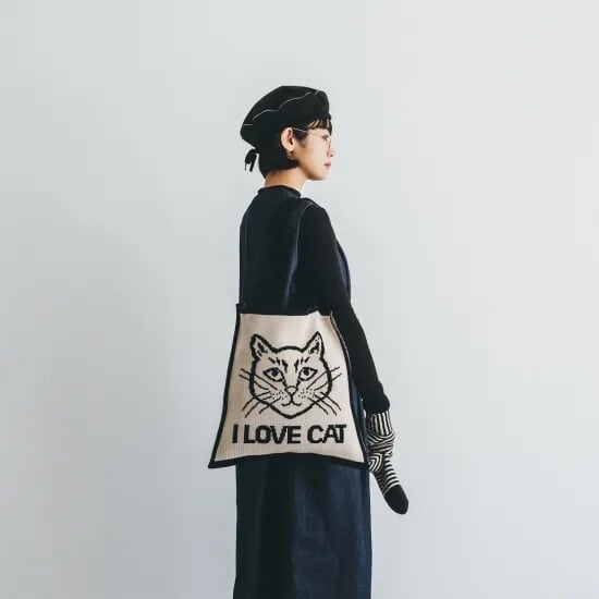 フレンチブル ニットショルダーバッグ アイラブキャットバッグ バッグ ショルダーバッグ レディース トートバッグ 日本製 国産 マチなし おしゃれ かわいい ねこ ネコ 綿 プレゼント ギフト French Bull 33-24254 Fr022