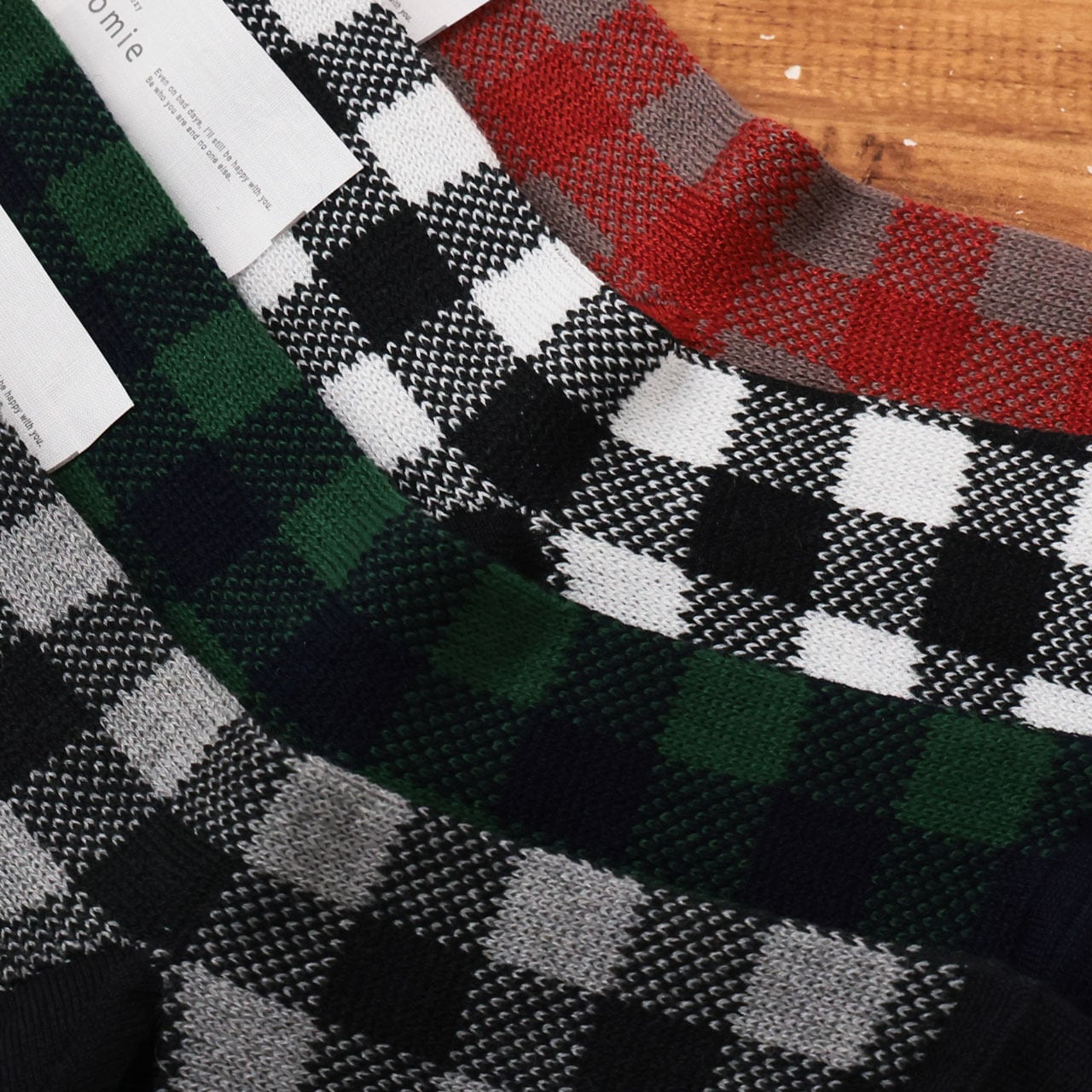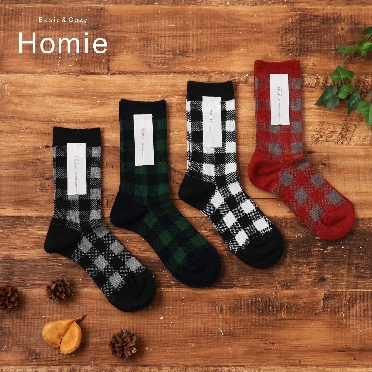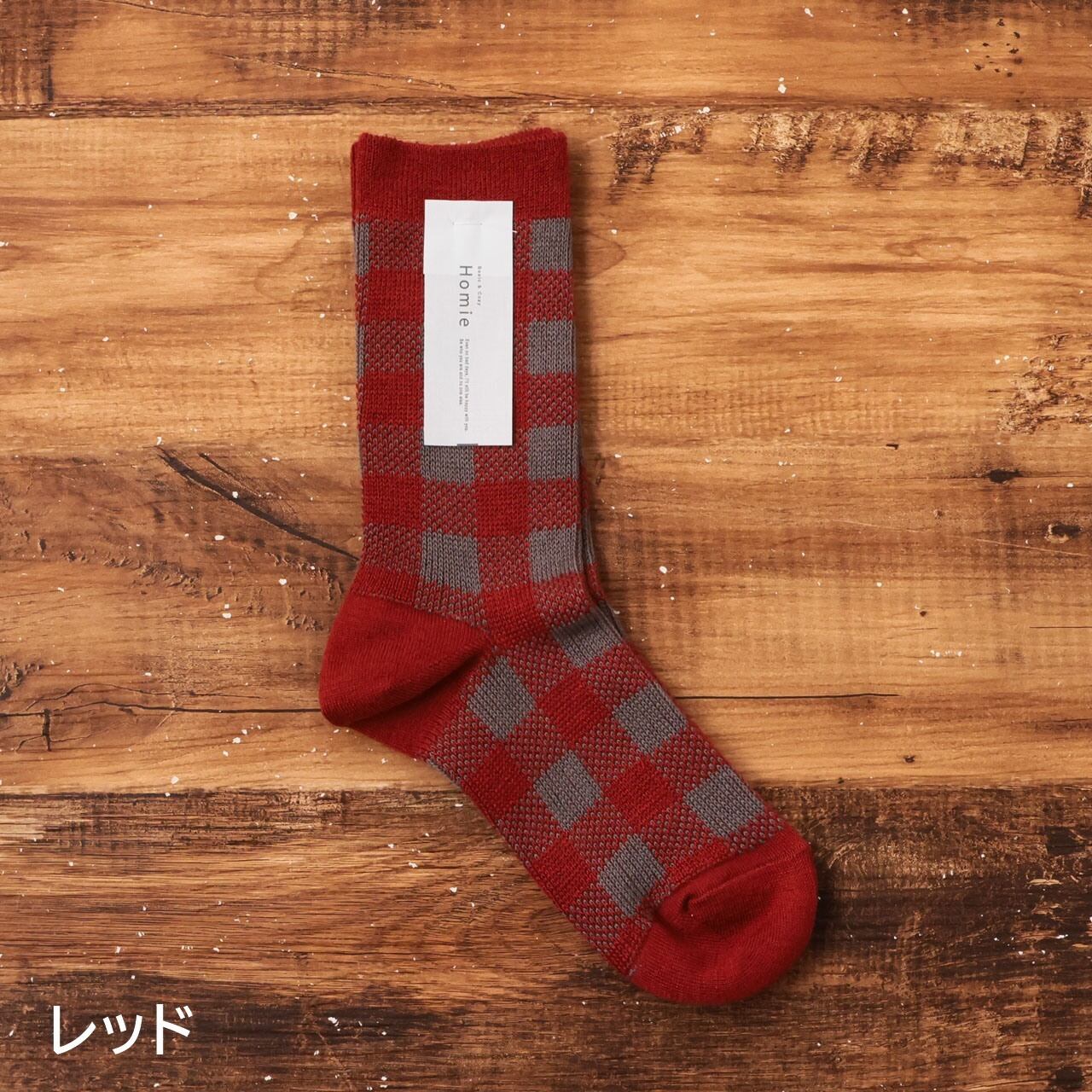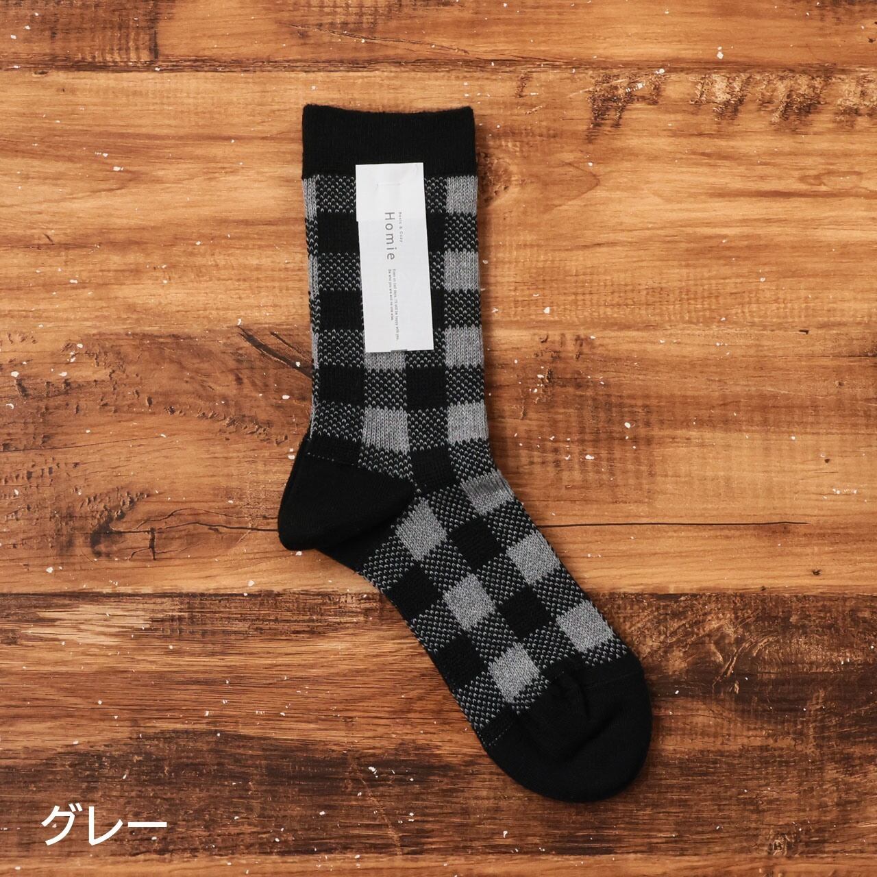 homie 靴下 コットンウールジャカードチェック ソックス レディース 暖かい おしゃれ 冬 ウール 柄 チェック柄 かわいい 日本製 コットン 綿 プレゼント ギフト グレー グリーン ホワイト レッド 22-24cm ホミー H-093 Hm058