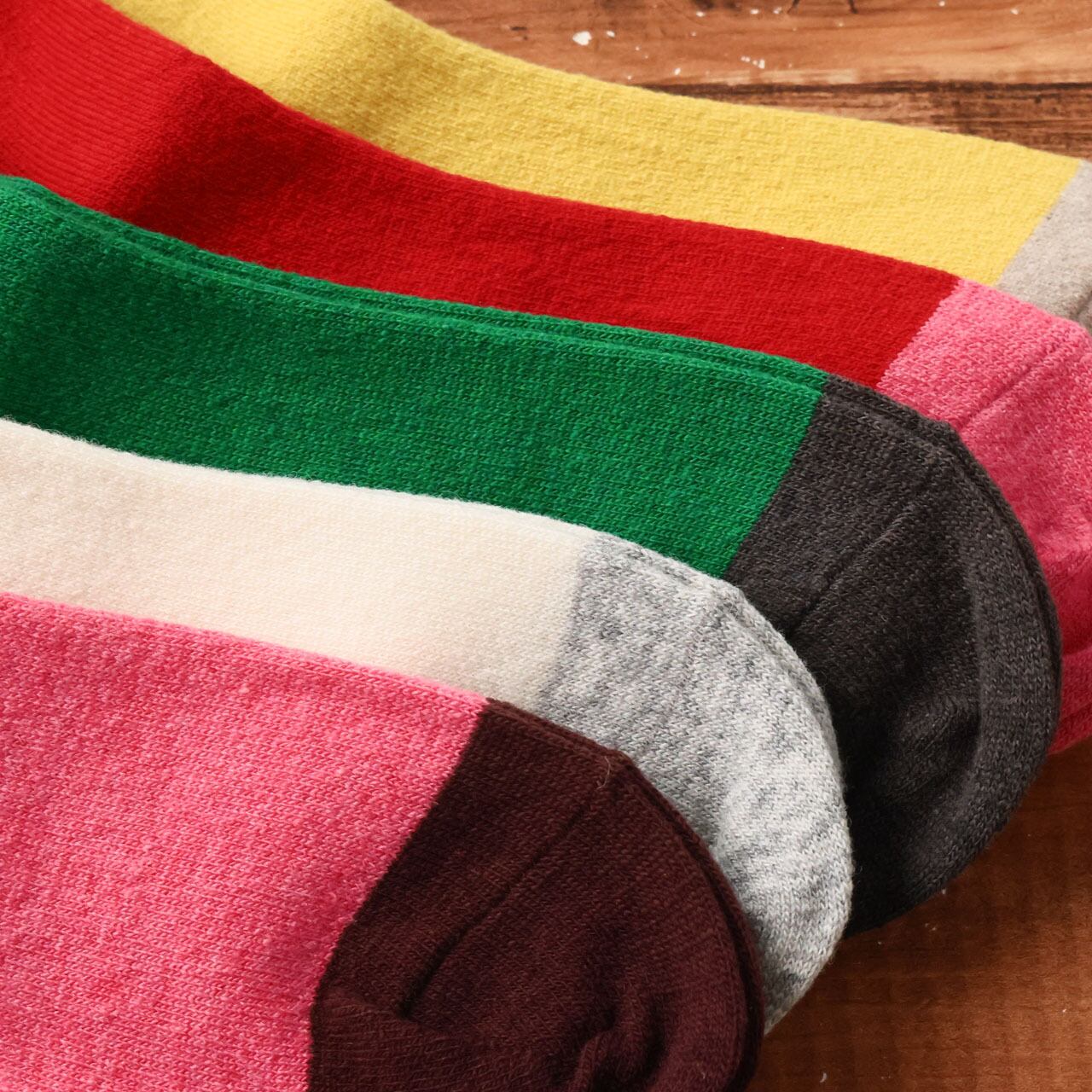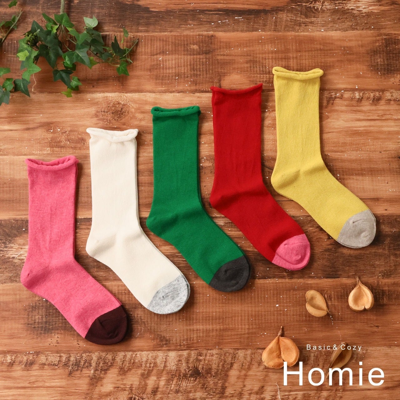 homie 靴下 ウールカラーソックス レディース 暖かい おしゃれ 冬 ウール かわいい バイカラー 日本製 プレゼント ギフト グリーン ホワイト ピンク レッド イエロー 22-24cm ホミー H-096 Hm060