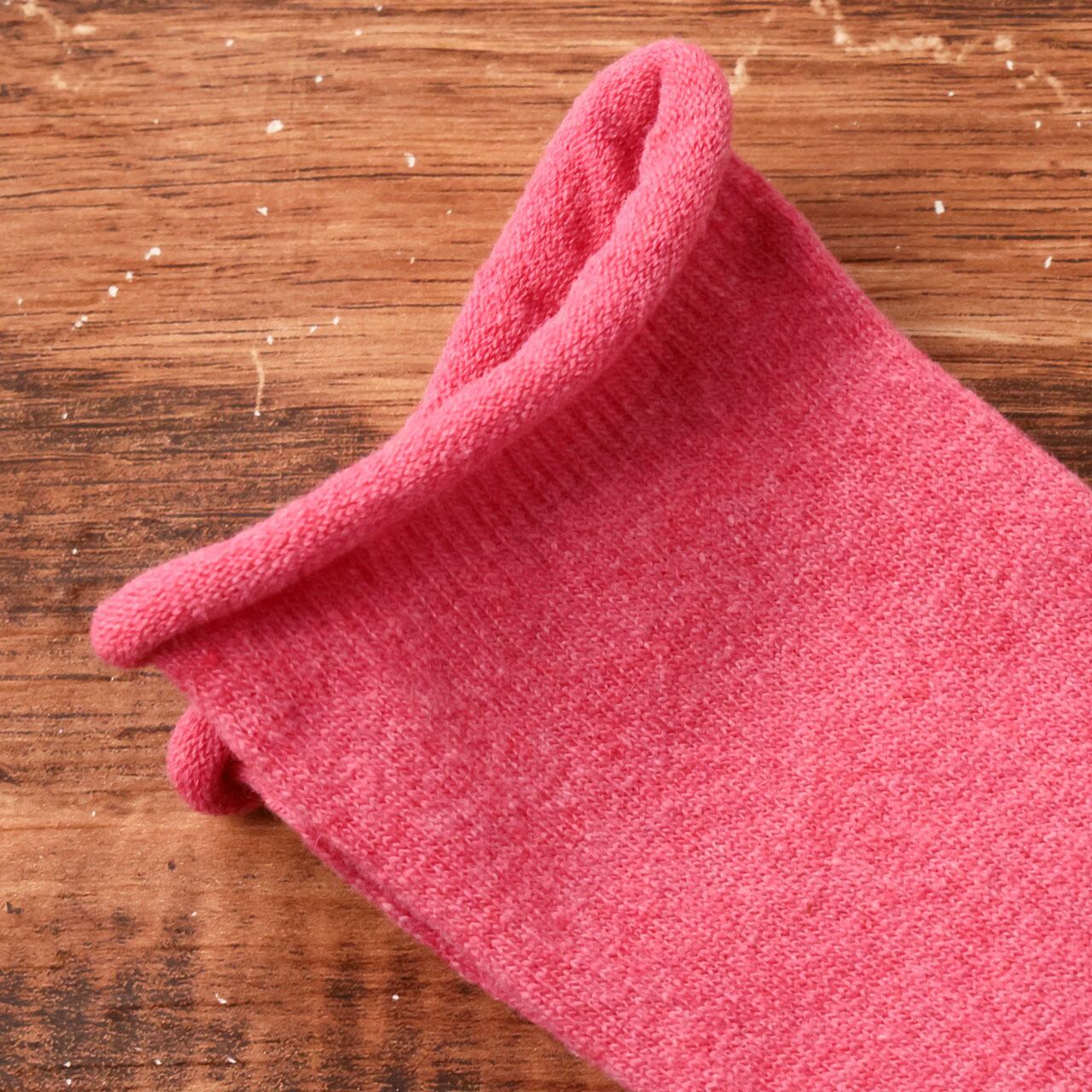靴下の特性上、色や柄の切り替え部分や、履き口のゴム部分は糸の端末が裏側に出ていることがございます。