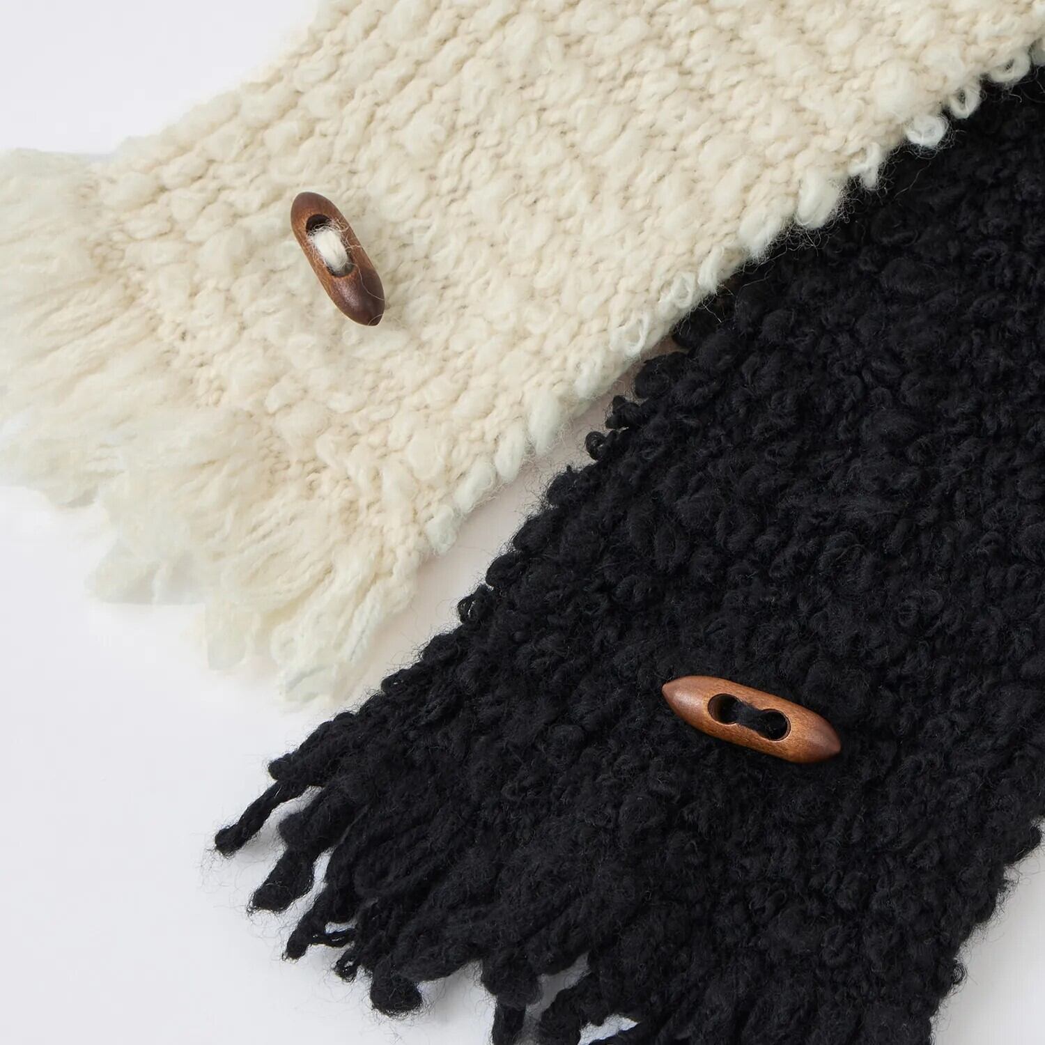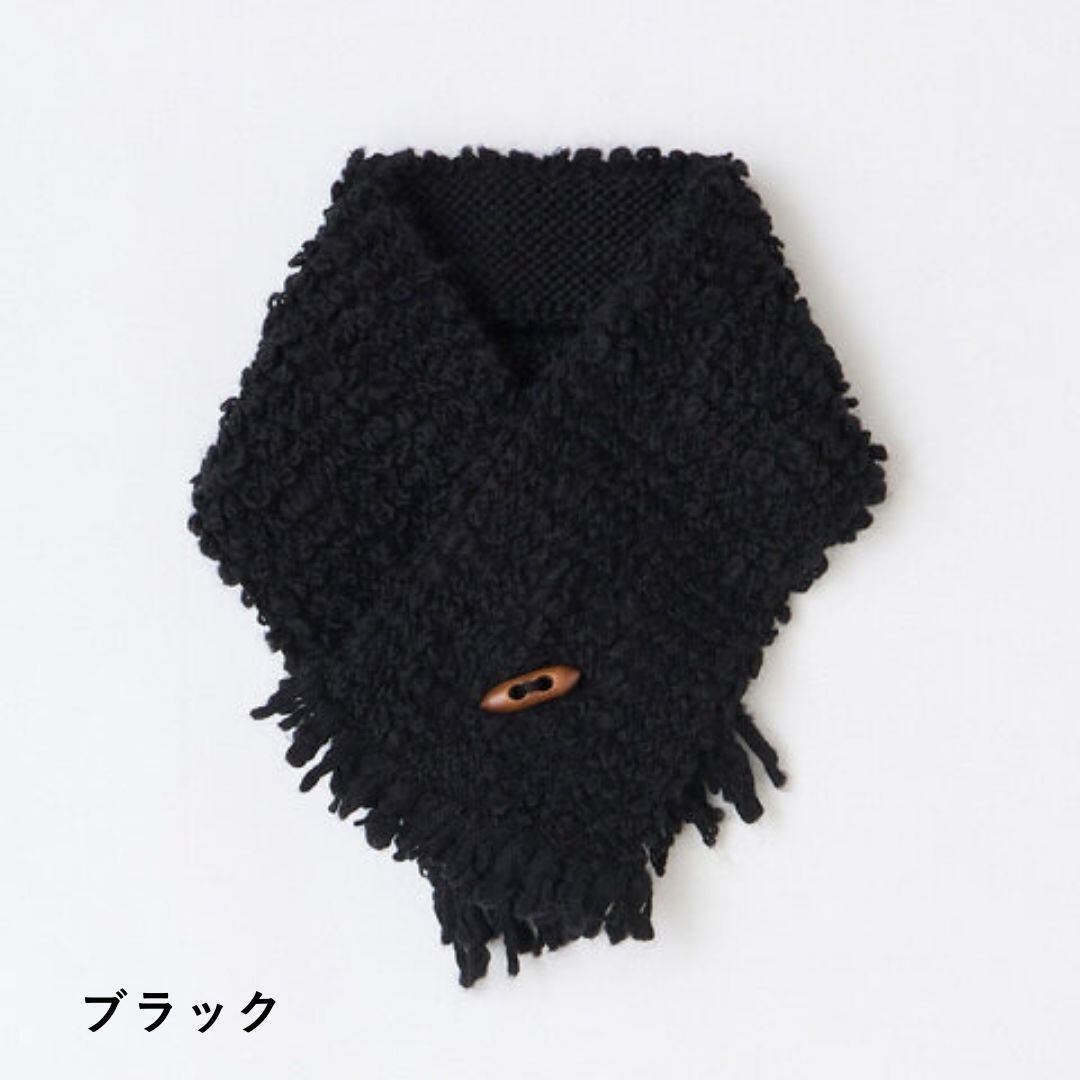 ボタン付きで巻き方も簡単、ストールよりコンパクトで扱いやすく、シンプルなコートにもボリューム感をプラスできます。
