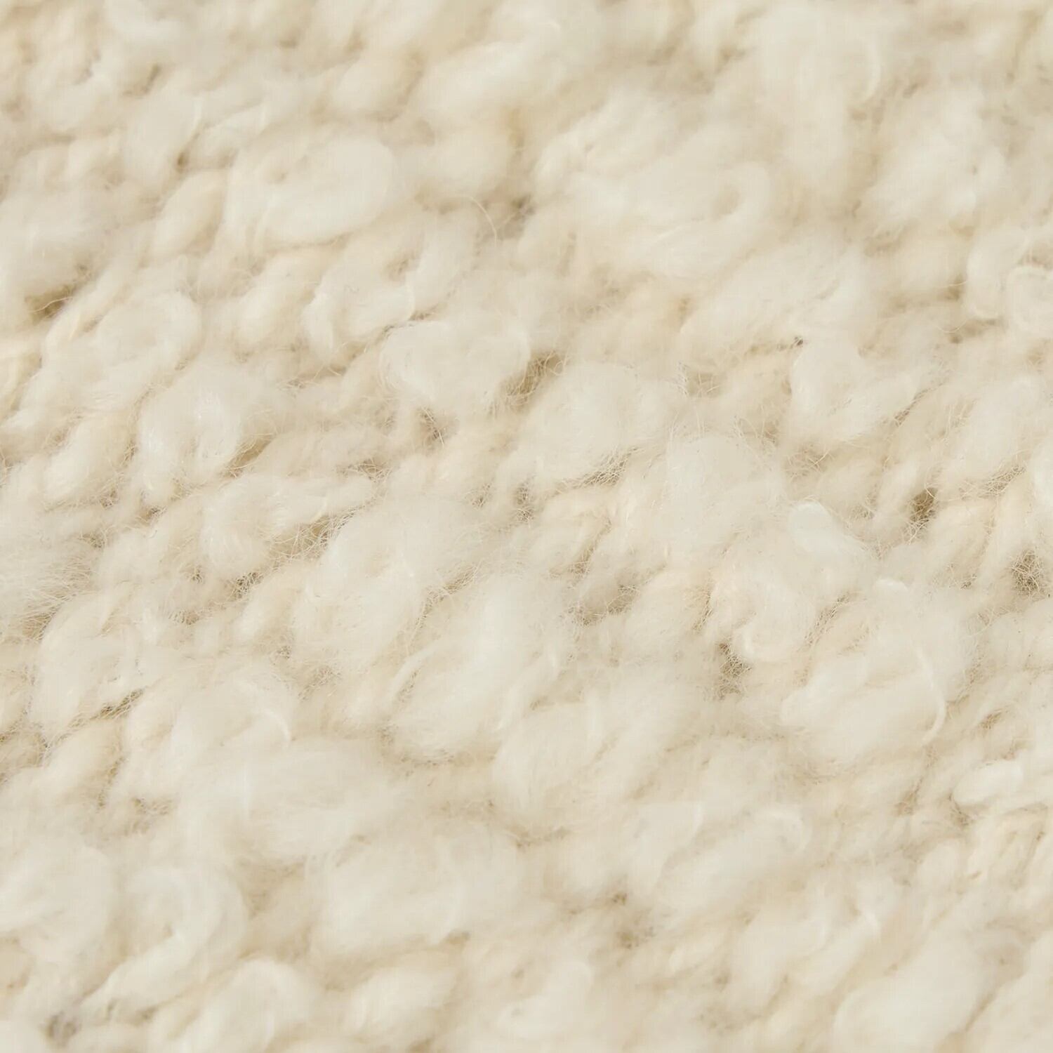 パイル編みで立体感があり、手編み風の暖かさを感じる一枚。ナチュラルな表情のスラブウール糸を使用し、ウール100%で防寒性も抜群です。