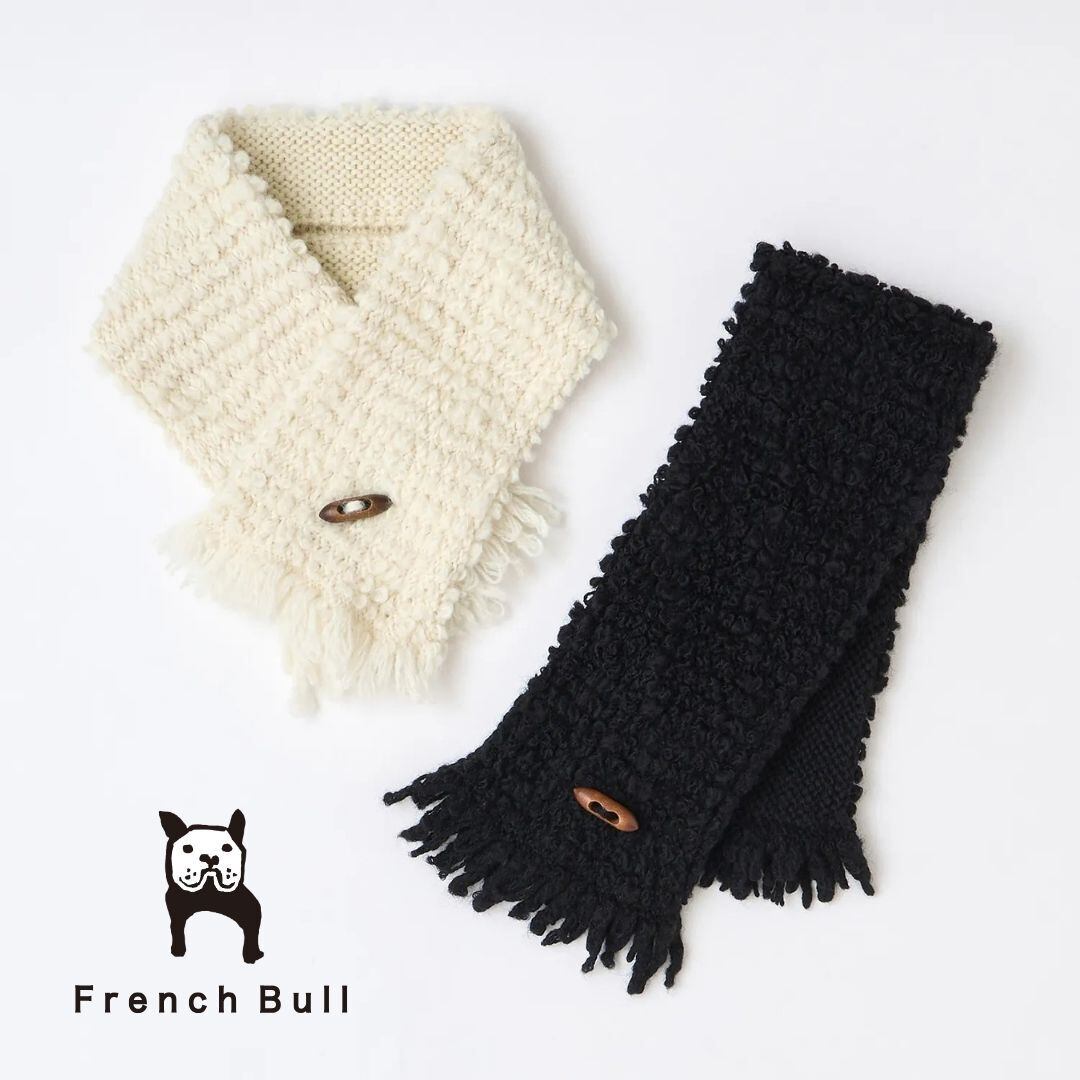 フレンチブル マフラー レディース ウール ブランド 日本製 国産 おしゃれ あたたかい かわいい 防寒 ウール100% シープミニマフラー ニットマフラー プレゼント ギフト ホワイト ブラック French Bull 17-25253 Fr042