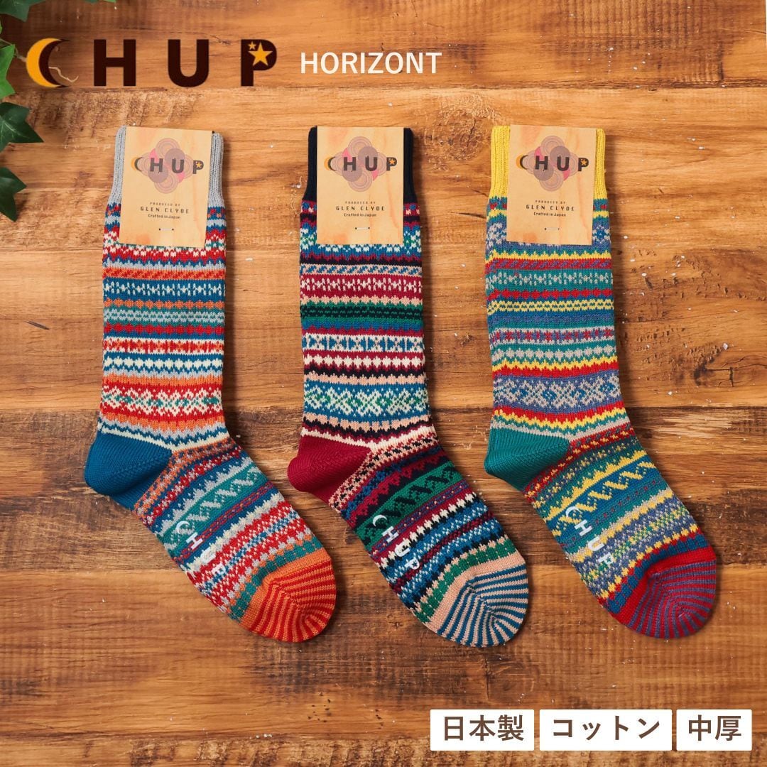 chup 靴下 ソックス HORIZONT レディース メンズ 厚手 暖かい おしゃれ ハイソックス 冬 柄 かわいい 日本製 国産 綿 ナイロン 23-25cm 25-27.5cm チュプ CHUP ライトグレー ブルー イエロー Ll130