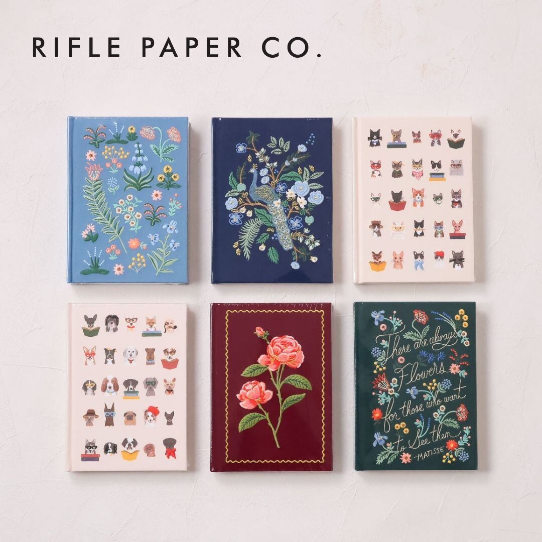 ライフルペーパー RIFLE PAPER CO. 刺繍ノートブック ファブリックノート アメリカ 罫線あり 可愛い おしゃれ ブックリボン付きベロア 日記 プレゼント ギフト a5 ノート 14.5×20.5cm JNE00 Fi003