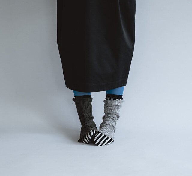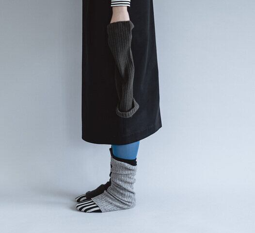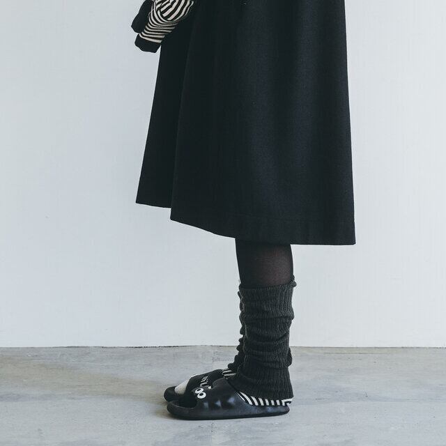 ウール糸を贅沢に使用し、縫い目のない「ホールガーメント」で編み立てたレッグウォーマー。