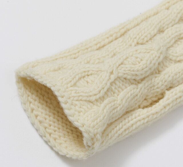 甲側に施された立体的なケーブル編みが、冬のコーディネートに奥行きと温もりをプラス。