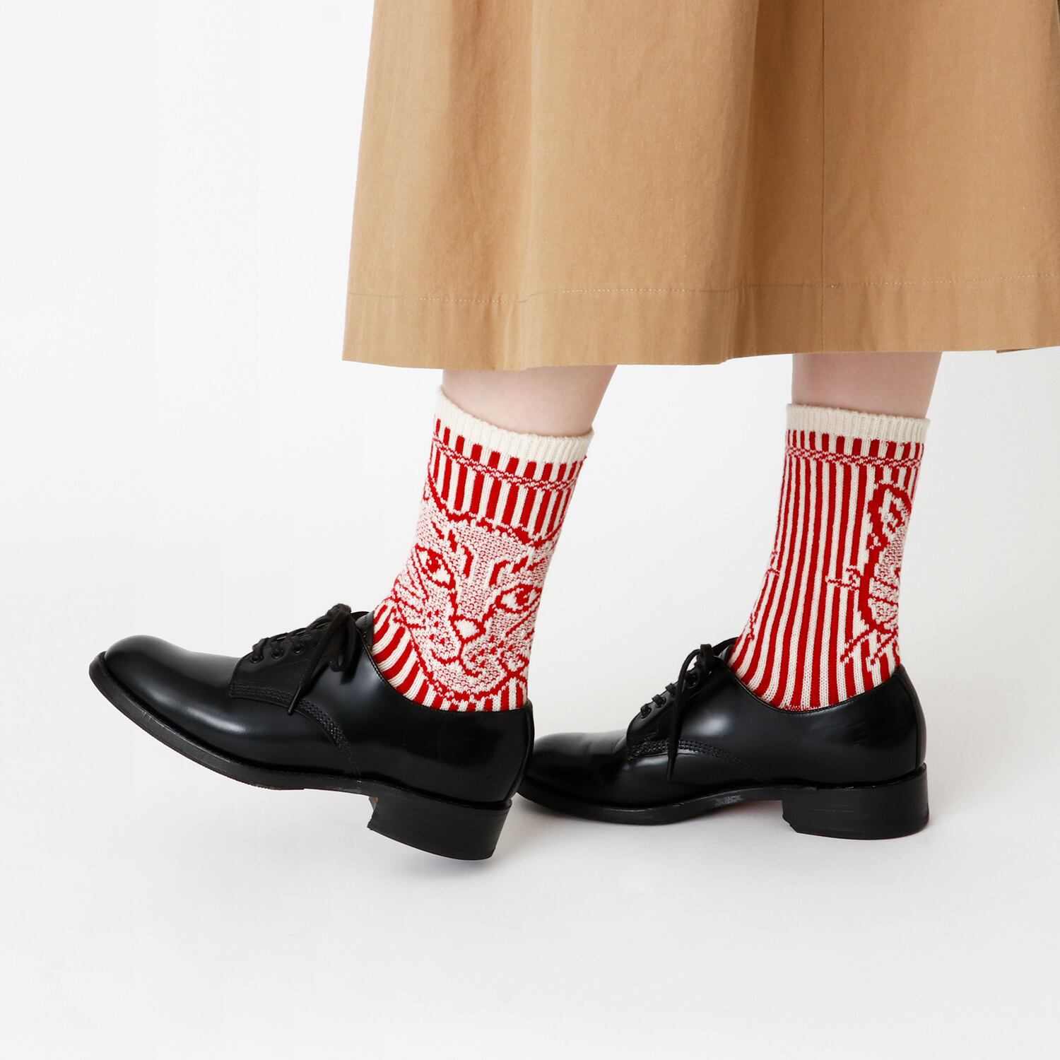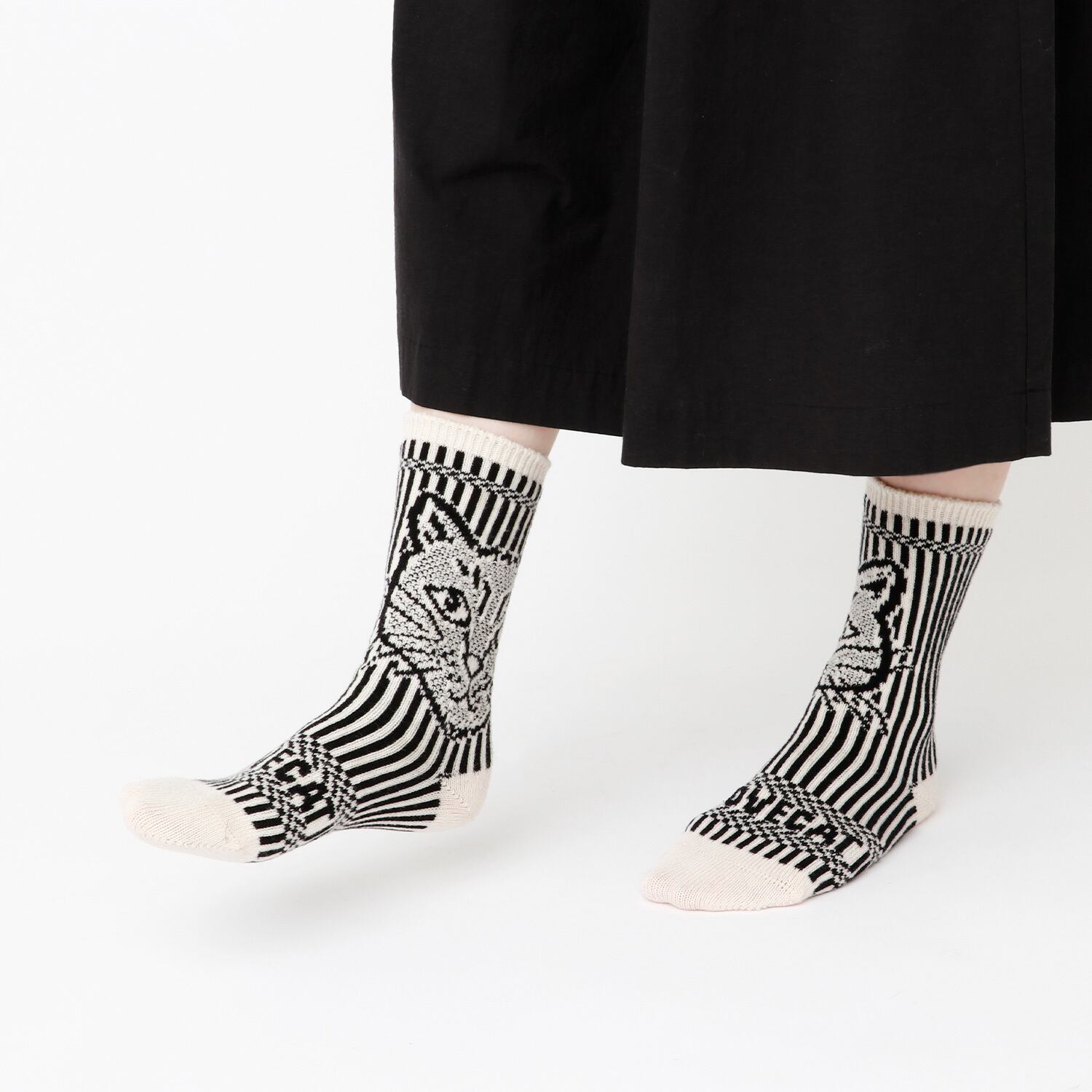 左右が決まっていない仕様なので、猫のお顔を「外側」に見せて主役にしたり、「内側」に寄せてさりげなく楽しんだり……お好みに合わせた履きこなしが可能です。