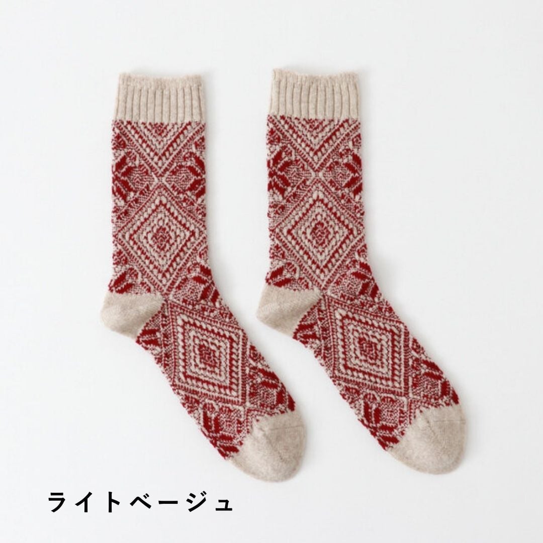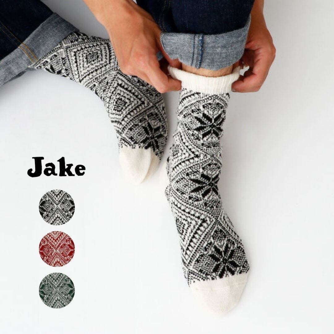 ジェイク 靴下 ソックス メンズ 秋 冬 ブランド 日本製 国産 暖かい おしゃれ 厚手 ヒンメリ柄 ノルディック柄 ウール 綿 MEN'Sヒンメリソックス ギフト プレゼント 25-27cm Jake 09-0232 Fr033