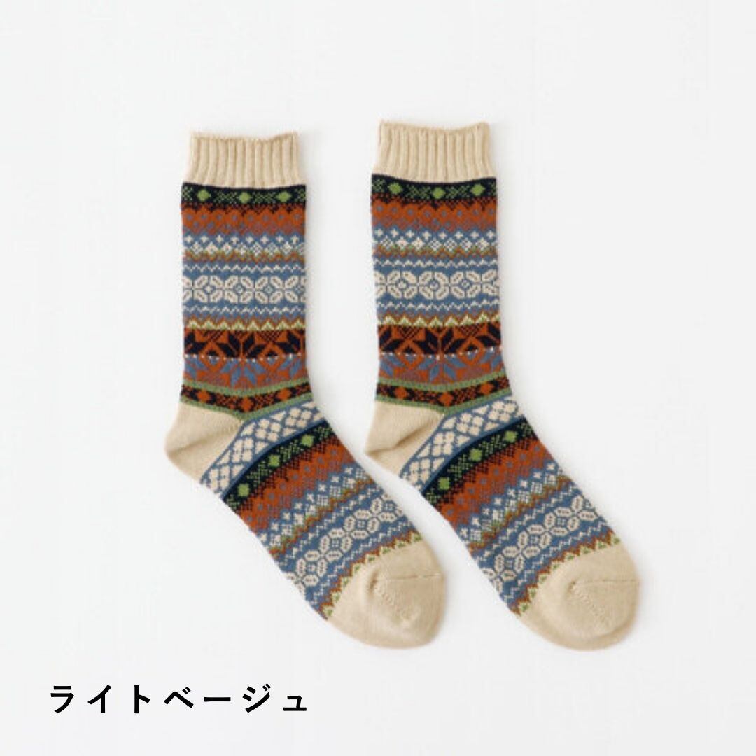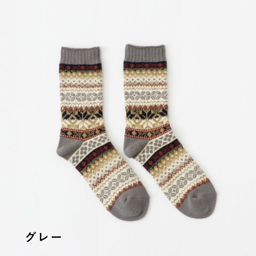 フレンチブル 靴下 ソックス レディース 秋冬 秋 冬 ブランド 日本製 国産 暖かい おしゃれ 厚手 ノルディック柄 綿 ポリエステル オータムソックス ギフト プレゼント 23-25cm French Bull 11-25255 Fr030