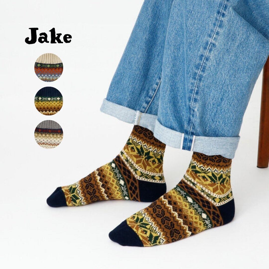 ジェイク 靴下 ソックス メンズ 秋冬 秋 冬 ブランド 日本製 国産 暖かい おしゃれ 厚手 ノルディック柄 綿 ポリエステル MEN'Sグオータムソックス ギフト プレゼント 25-27cm Jake 21-25251 Fr034