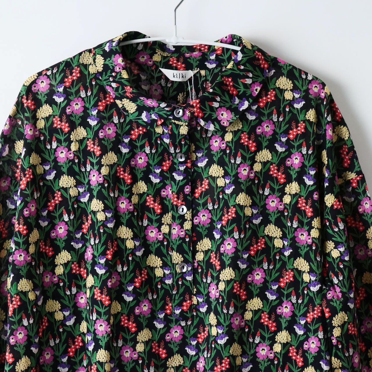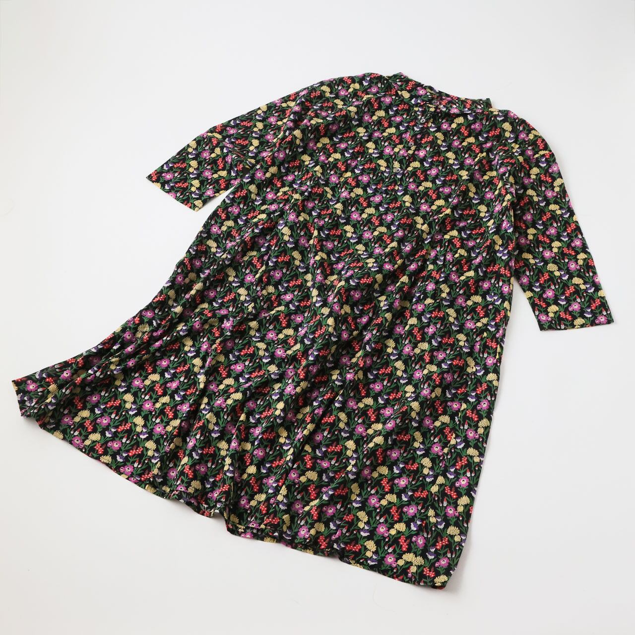 KILKI キルキー 黒 ワンピース ポケット付き レディース ブルーミンググローブ 長袖 体型カバー ナチュラル シック 綿 コットン 100% ボイル 素材 インド製 花柄 かわいい 大人 ハンドメイド ギフト プレゼント ブラック 5S-D42 Kl003
