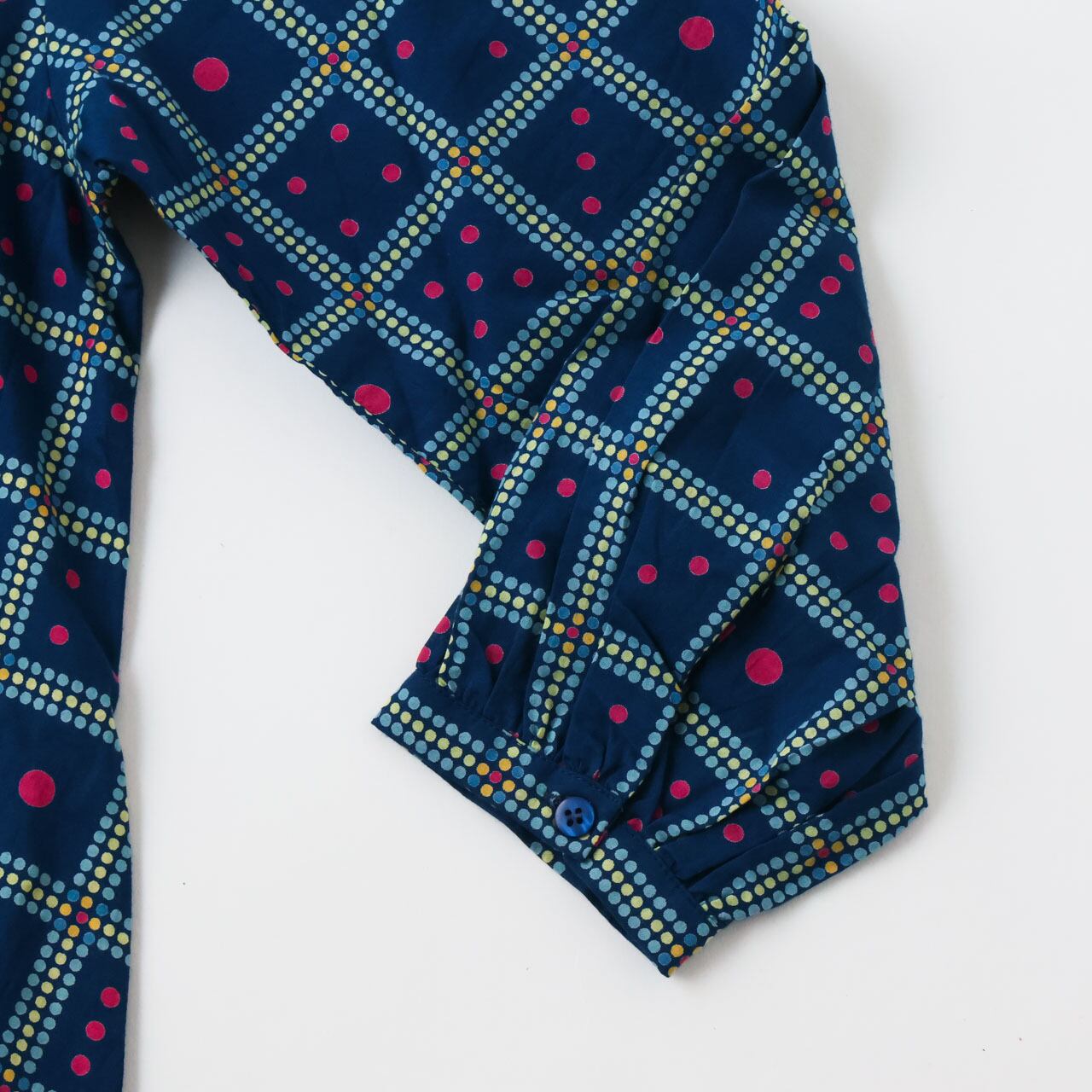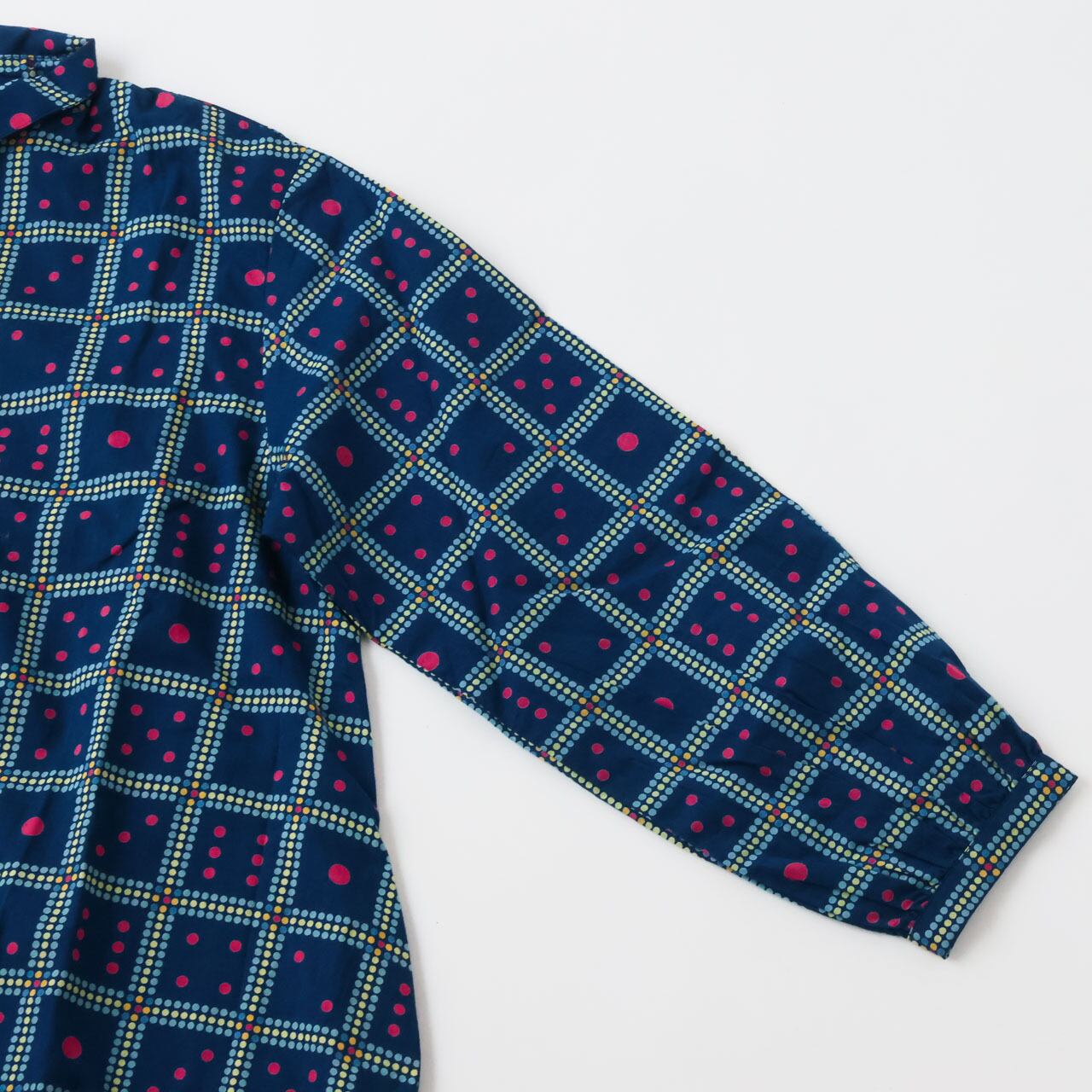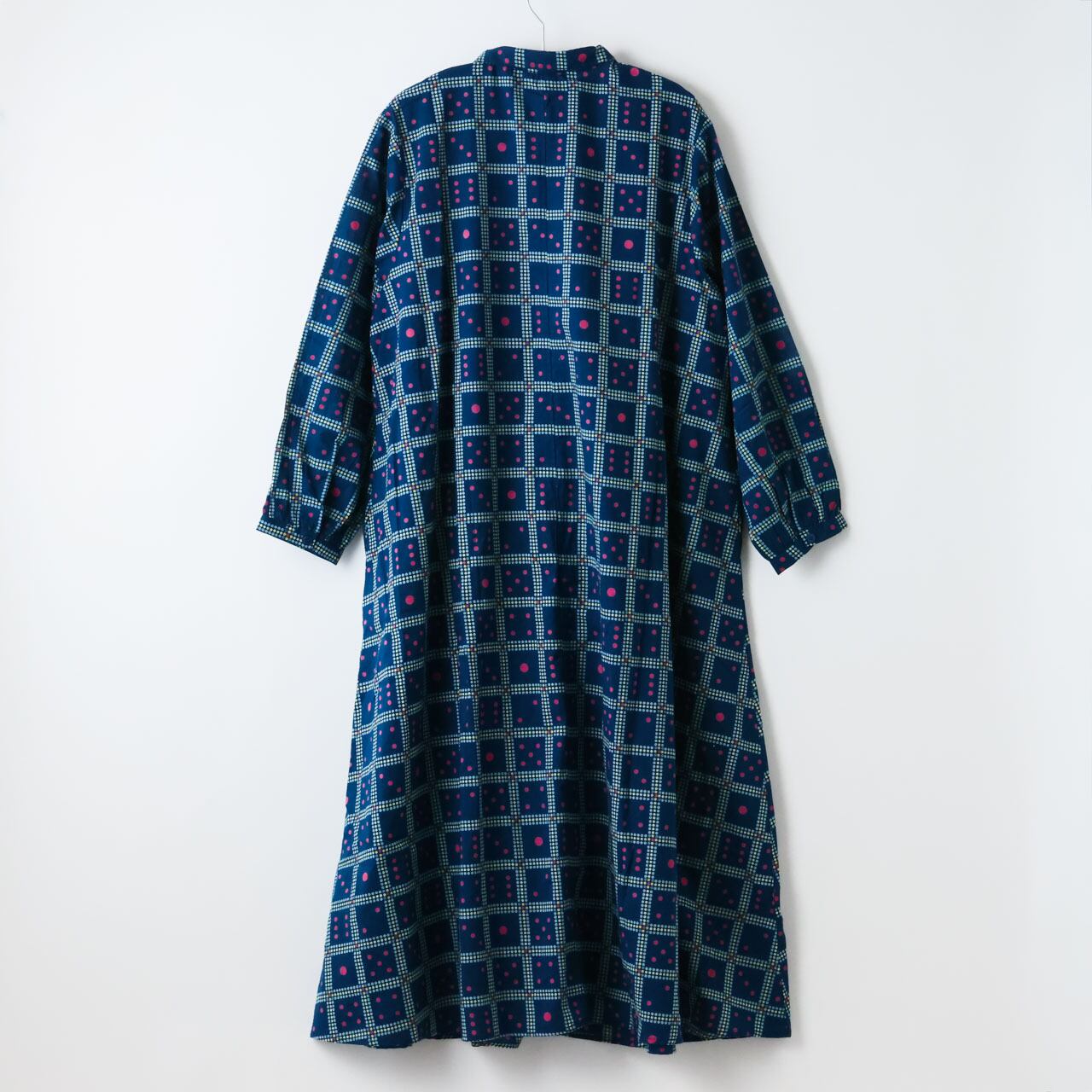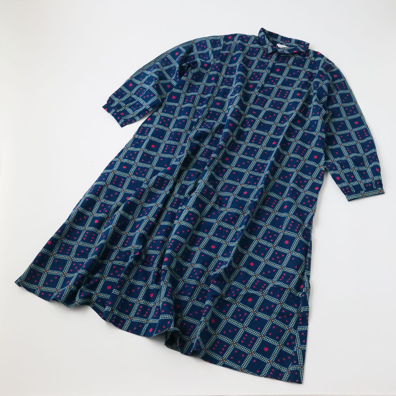 KILKI キルキー ワンピース ポケット付き レディース ダイスチェック 長袖 体型カバー ナチュラル 綿 コットン 100% キャンブリック 素材 インド製 チェック柄 かわいい 大人 ギフト プレゼント ネイビー 5B-D41 Kl005