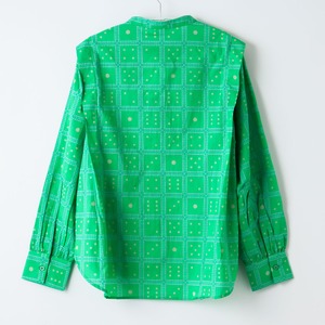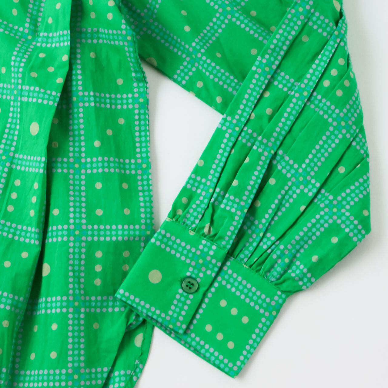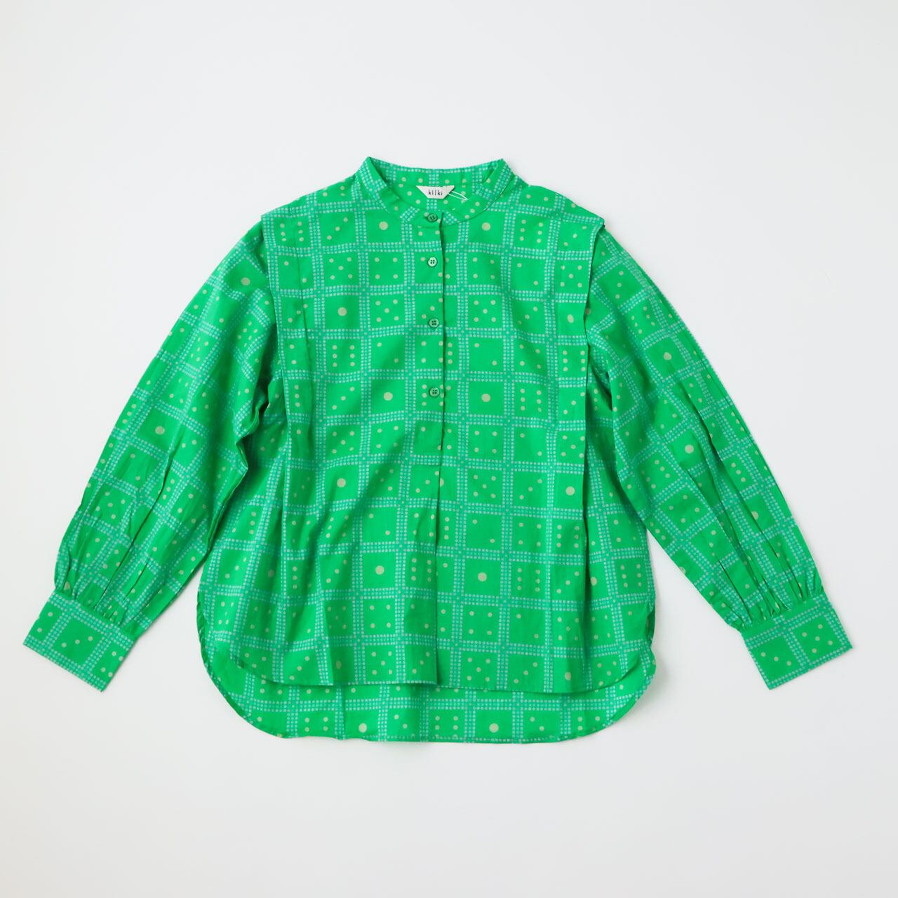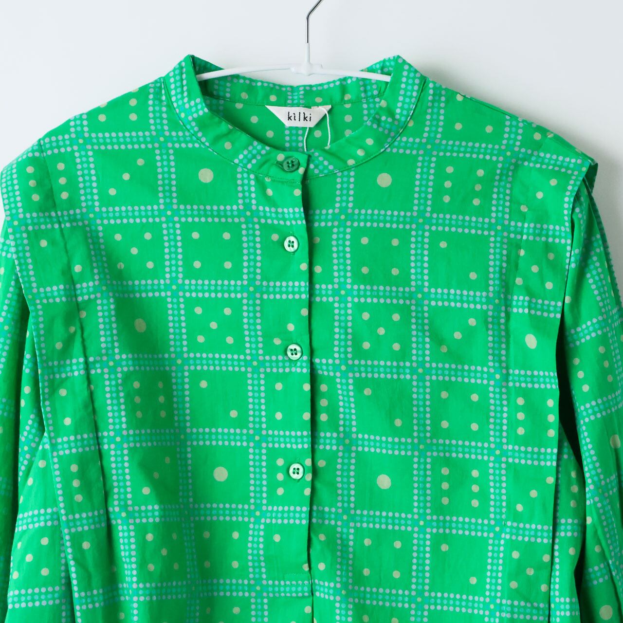 KILKI キルキー ブラウス ダイスチェック レディース おしゃれ 長袖 襟なし シャツ ノーカラーシャツ 女性 綿 コットン 100% キャンブリック チェック柄 インド製 大人 ギフト プレゼント グリーン 5B-B41 Kl006