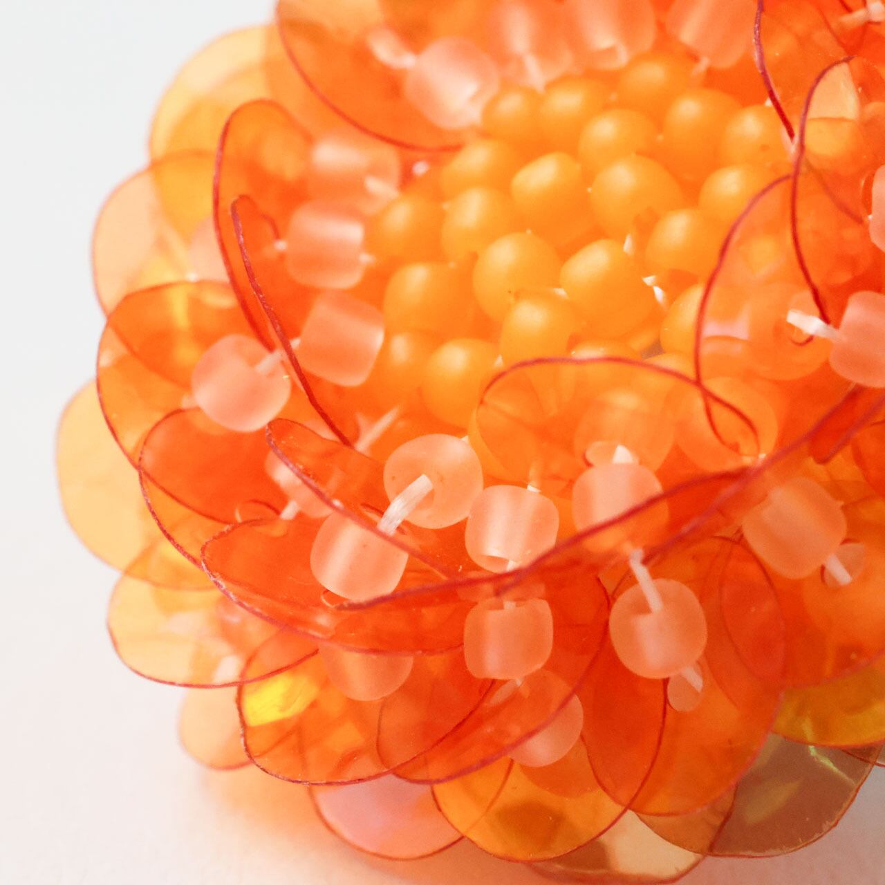 ボリュームのあるデイジーの花びらを、贅沢に4枚重ねたオーロラビーズで表現しました。