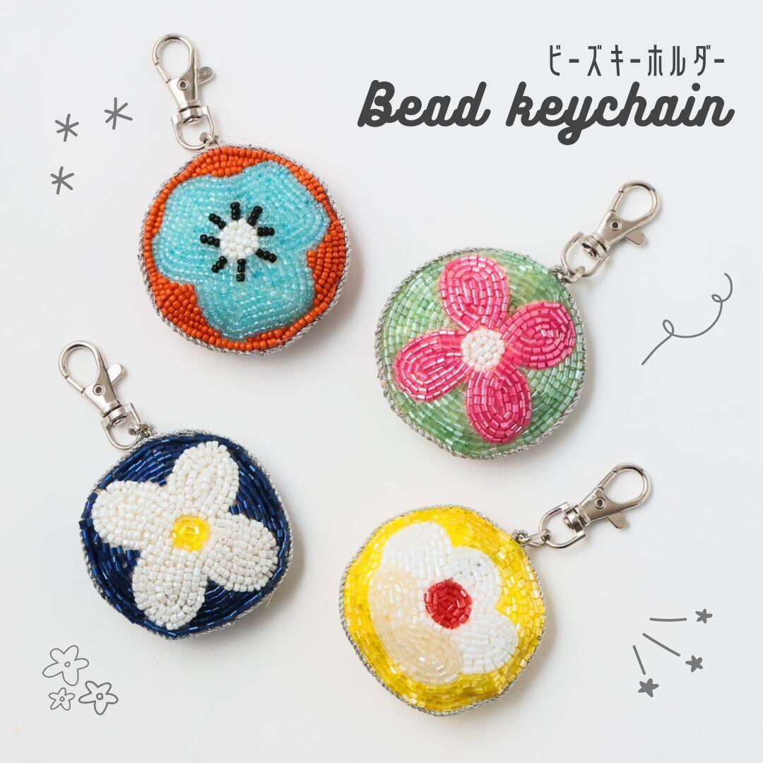 キラキラと輝く、かわいいビーズキーホルダーに