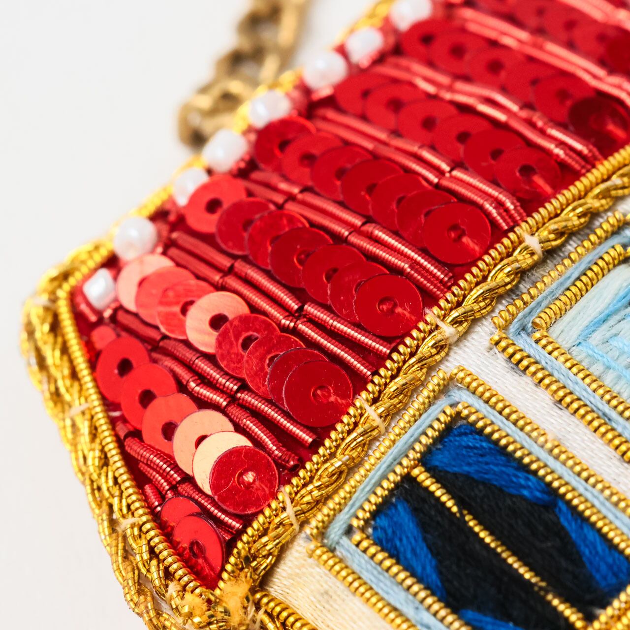 インドの伝統的なザリ刺繍(モール糸を用いた手刺繍)を施しています。