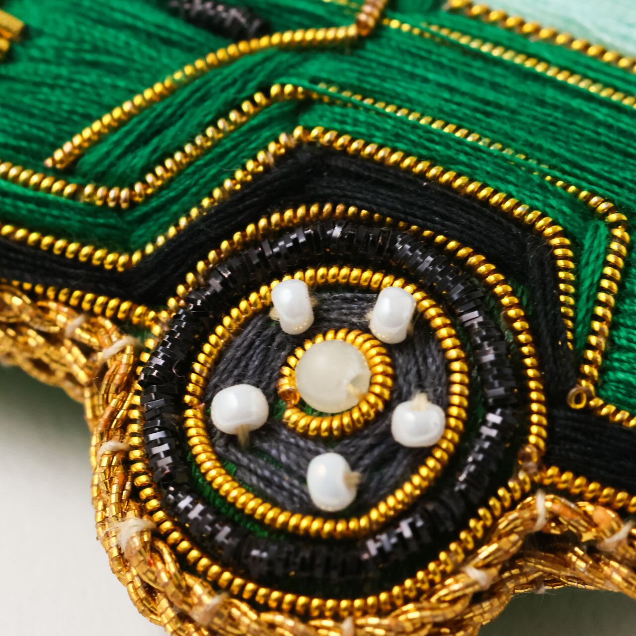 ザリ糸・サテン生地・ビーズ・アイアン