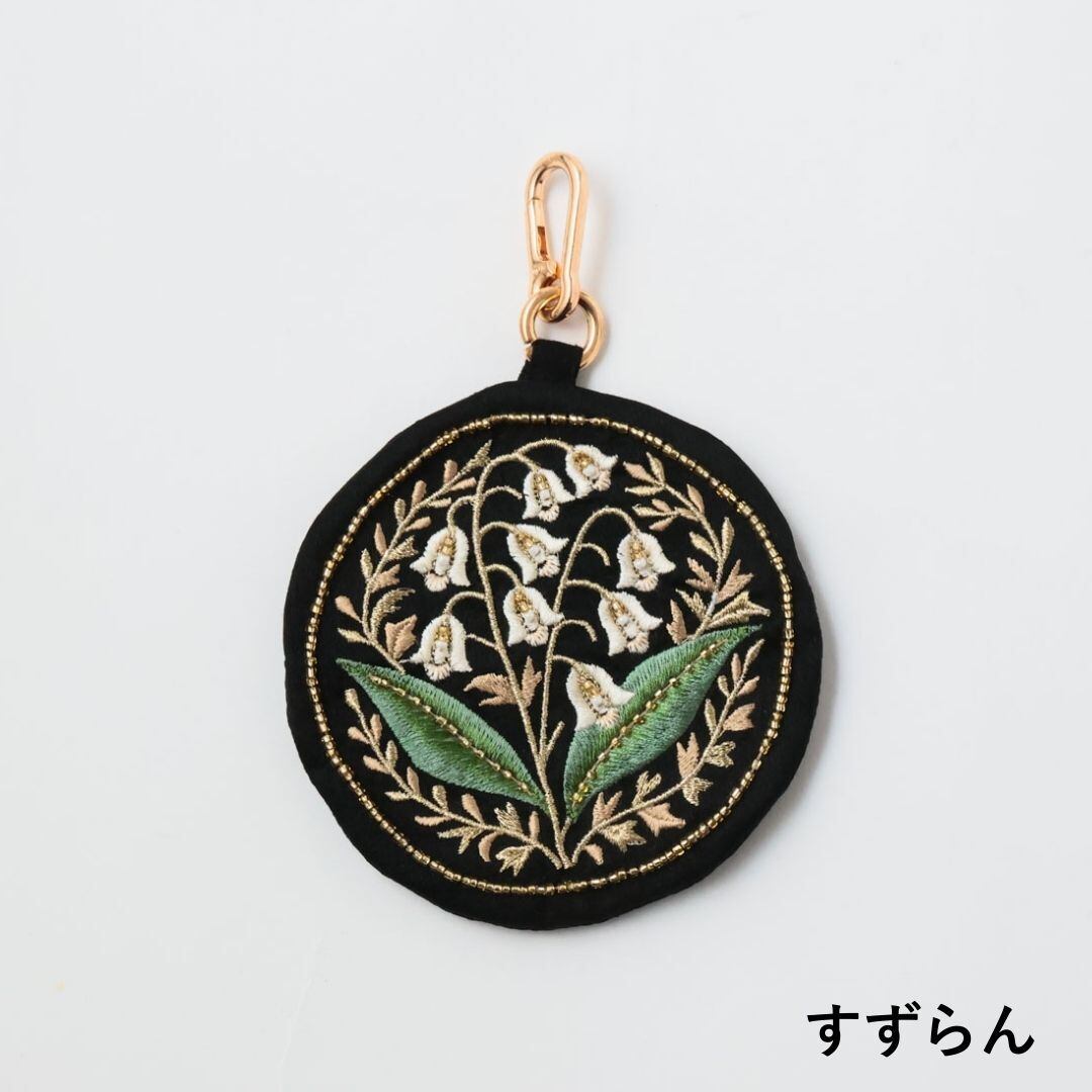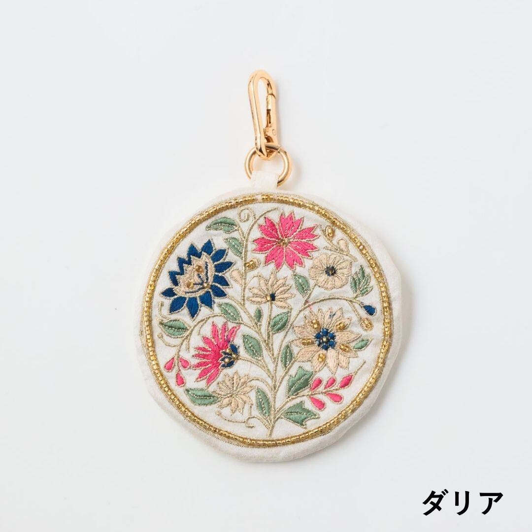 キシマ Kishima フラワーモチーフ キーポーチ 小さめ かわいい おしゃれ 刺繍ポーチ 花柄 レディース インド製 ギフト プレゼント グリーン ピンク ブルー イエロー ブラック ホワイト グリーン パープル KNB890 Km004