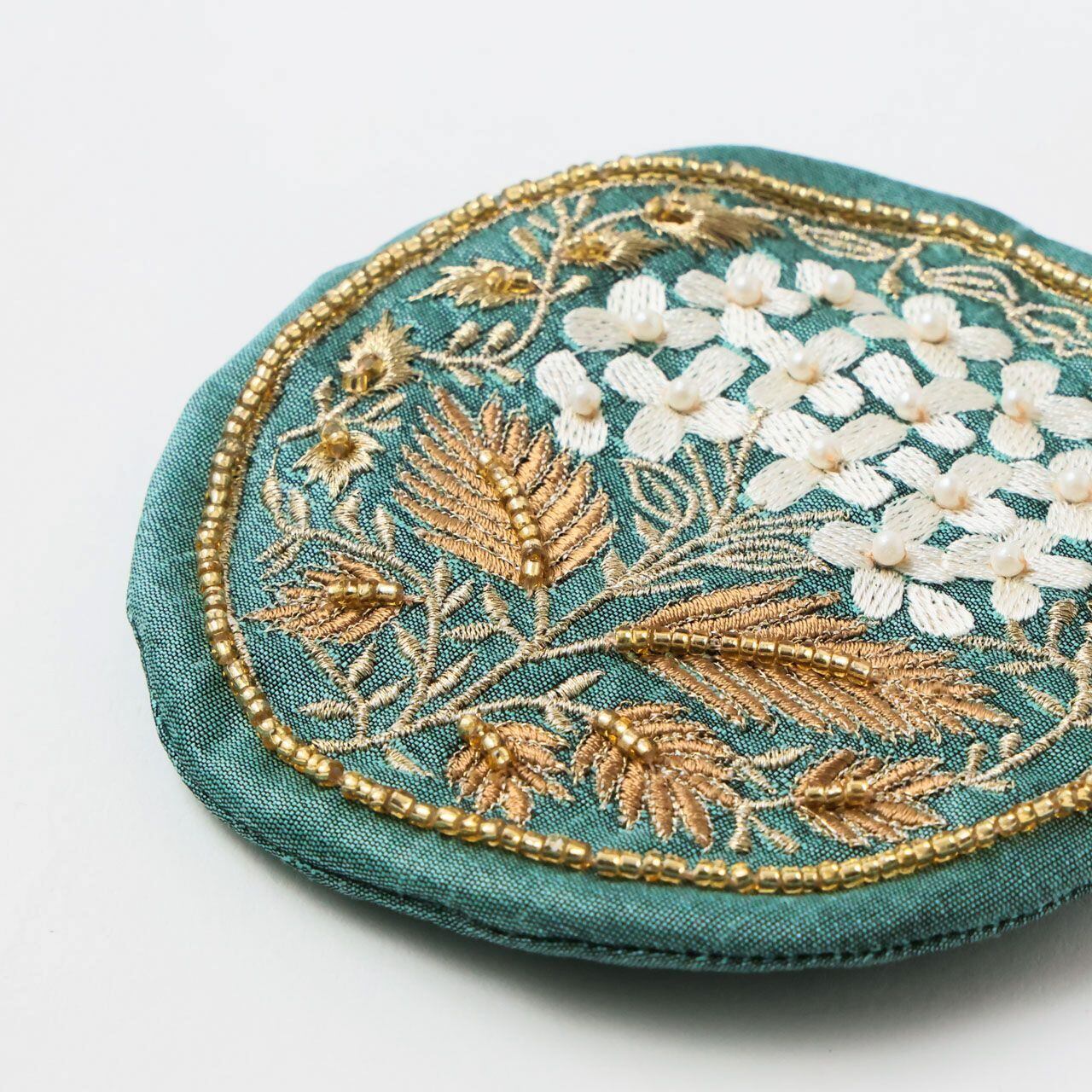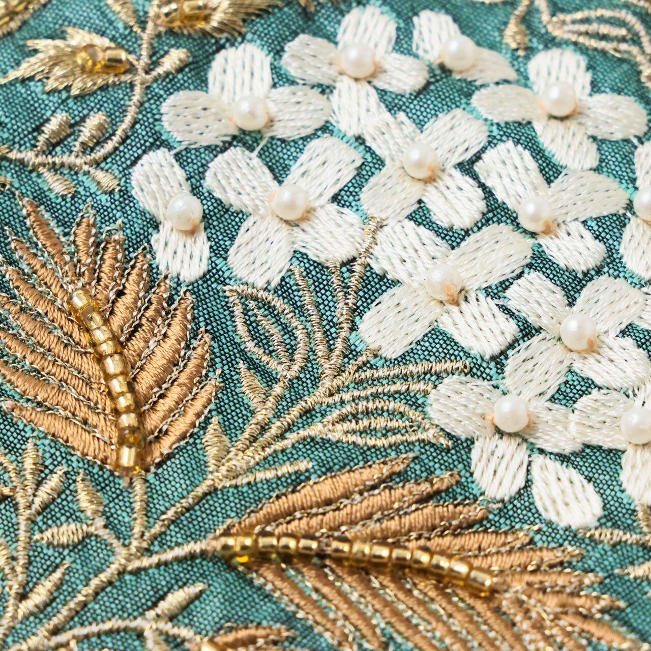 インドの伝統的なザリ刺繍(モール糸を用いた手刺繍)を施しています。