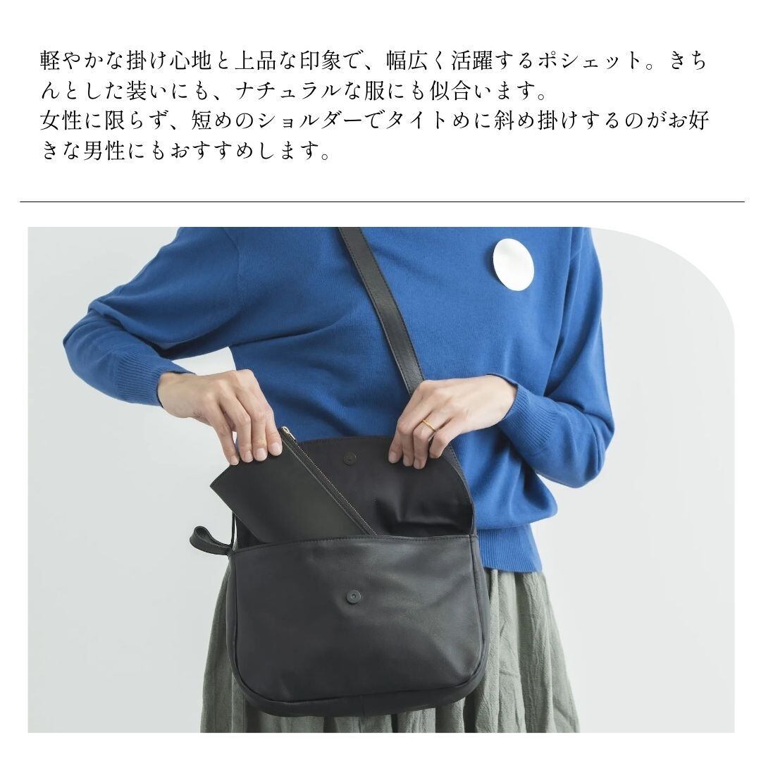 性別やシーンを問わず、軽やかに寄り添うポシェットです。