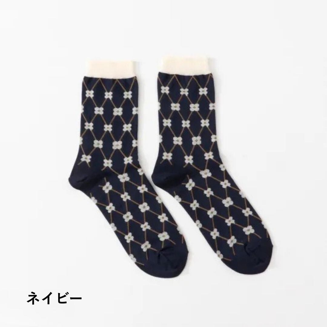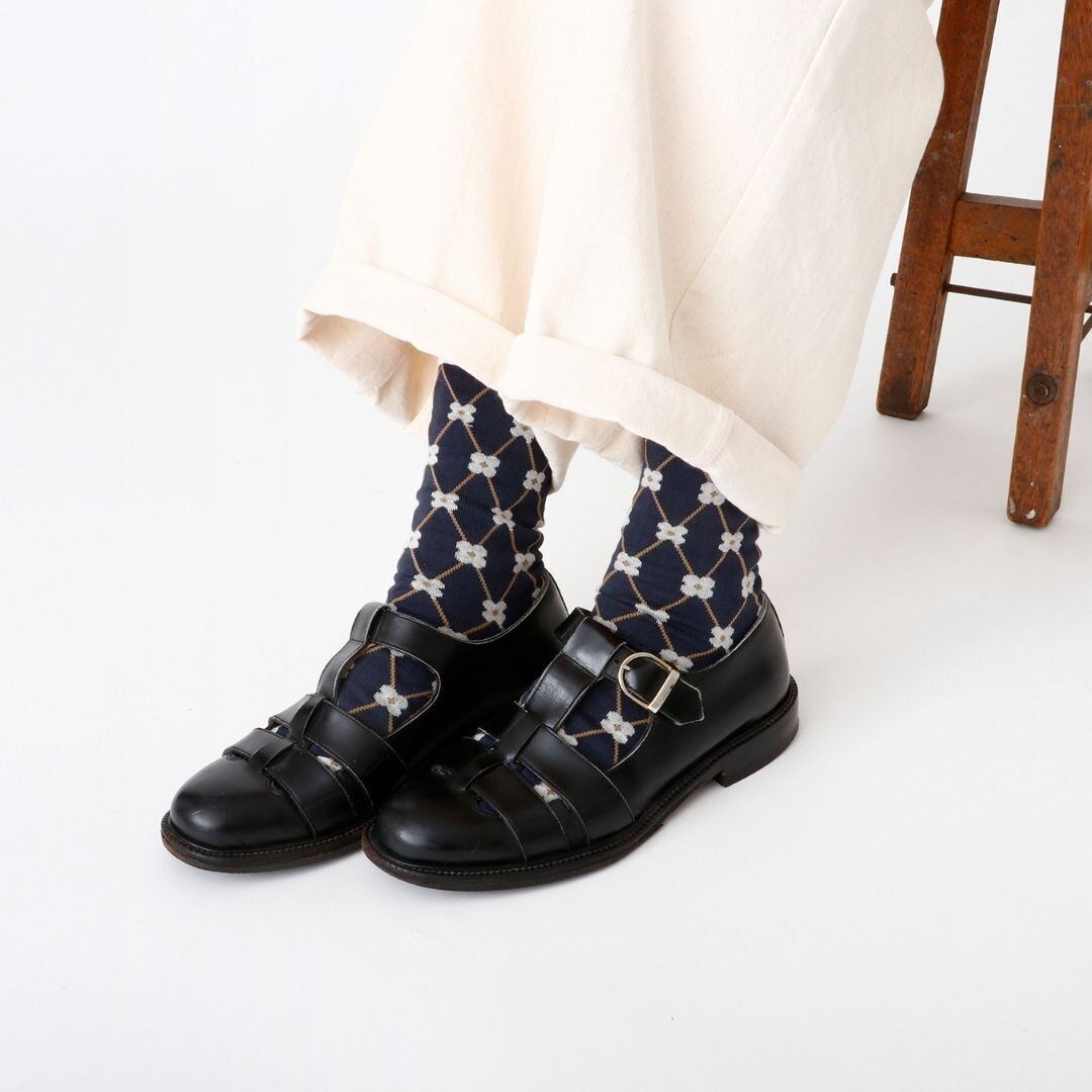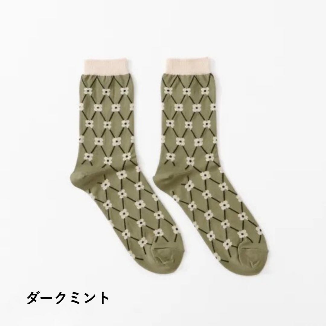花かごをイメージした、レトロで愛らしい格子柄のソックスです。