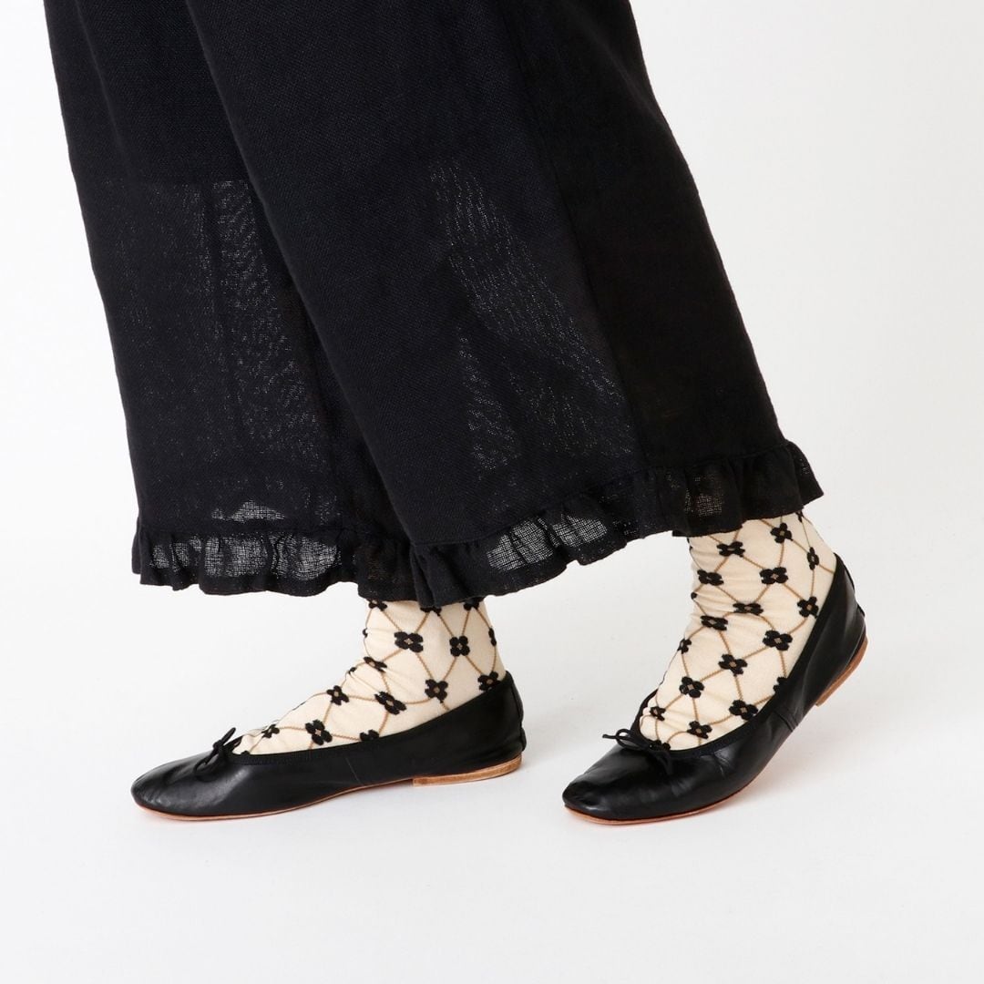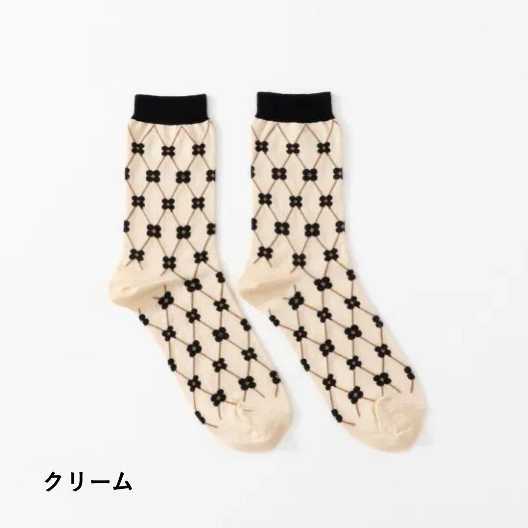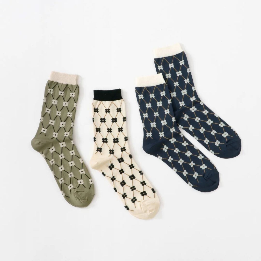 花かごをイメージした、レトロで愛らしい格子柄のソックスです。