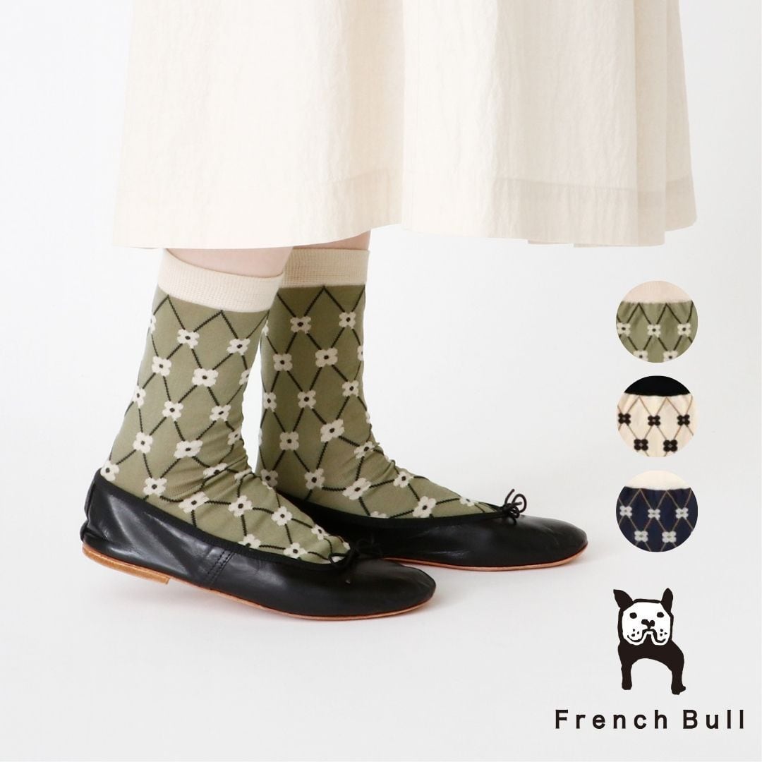 フレンチブル French Bull 靴下 ソックス レディース パニエソックス 春夏 薄手 国産 日本製 綿 ナイロン 花柄 レトロ おしゃれ かわいい ギフト プレゼント ネイビー 白 ホワイト グリーン 23-25cm 11-26106 Fr053