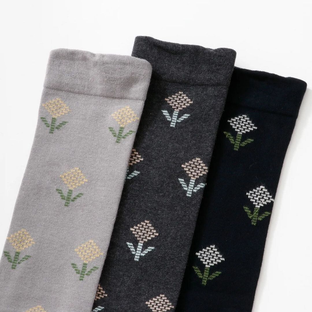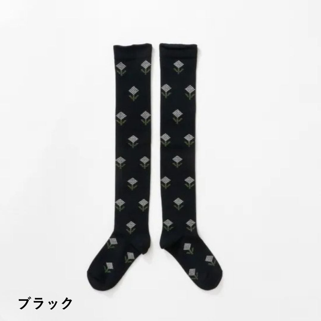 フレンチブル French Bull 靴下 レディース ジニアソックス ハイソックス ロング丈 薄手 通年 オールシーズン 国産 日本製 綿 ナイロン 花柄 お花 おしゃれ かわいい ギフト プレゼント 23-25cm 11-26116 Fr056