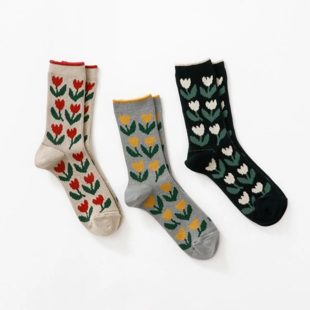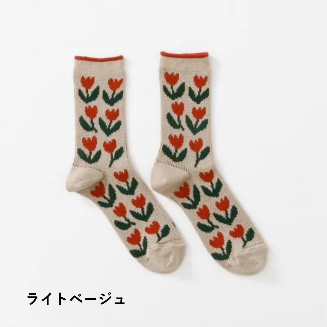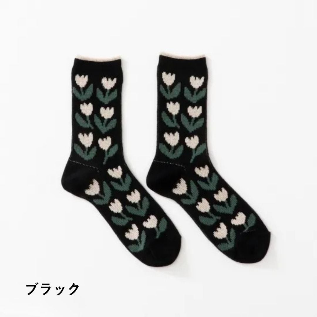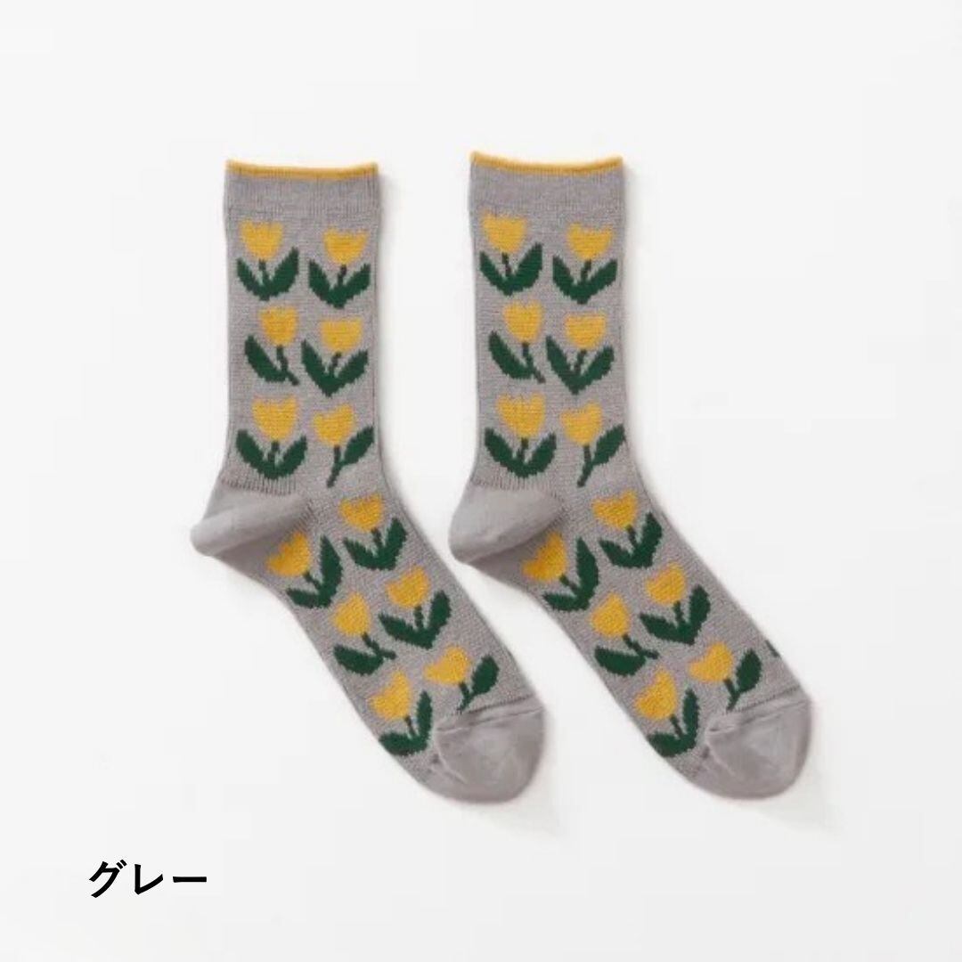 フレンチブル French Bull 靴下 ソックス レディース チューリップソックス おしゃれ かわいい 通年 オールシーズン 国産 日本製 綿 ポリエステル ジャガード編み チューリップ プレゼント 23-25cm 11-26118 Fr057